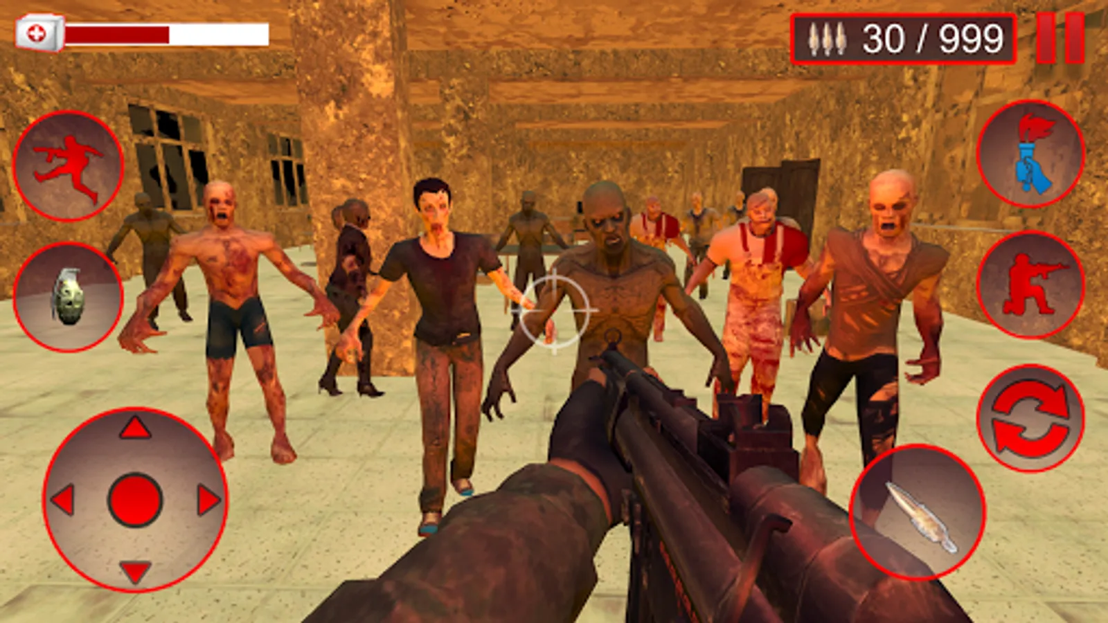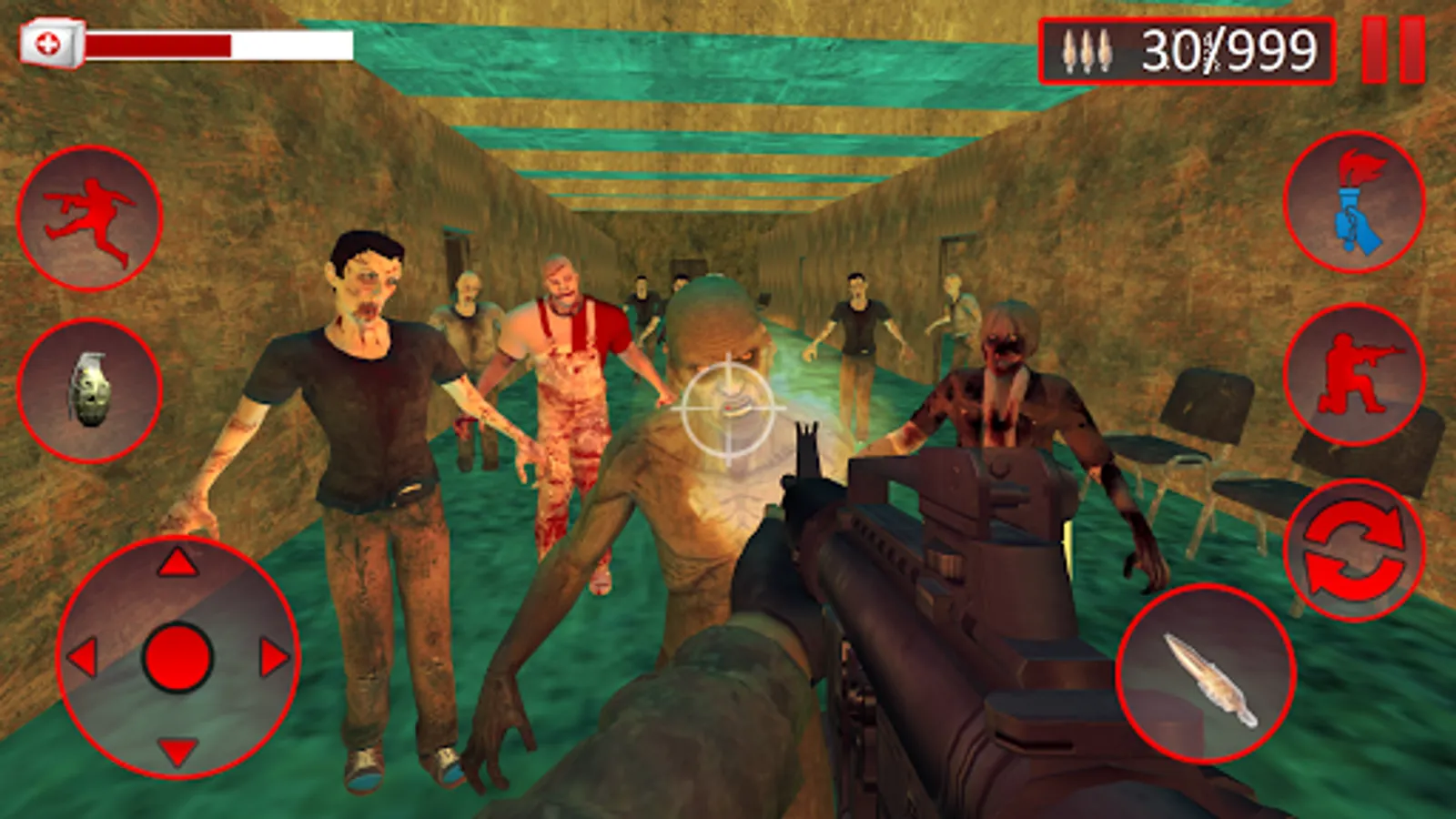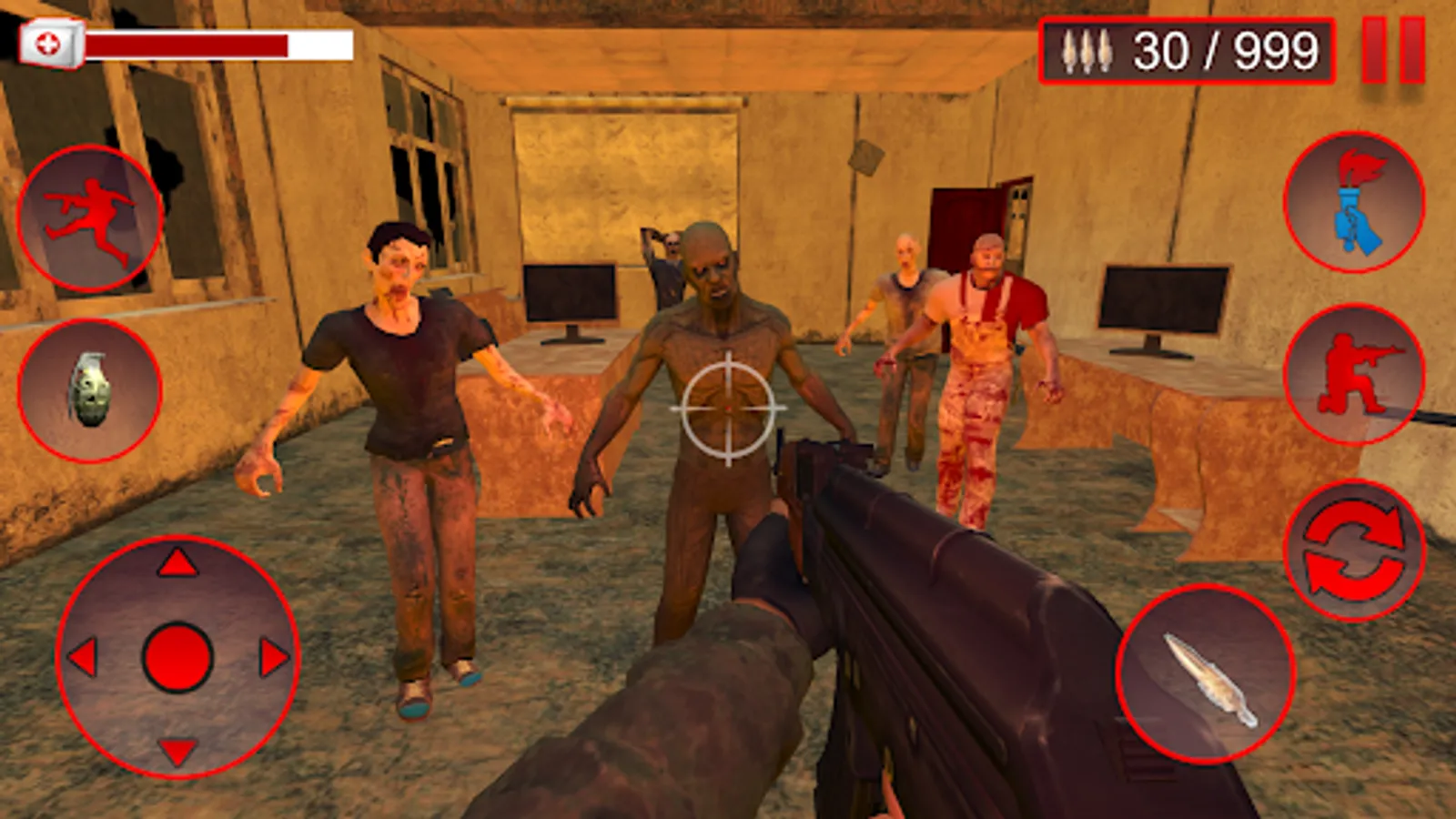 Zombie Hunter 3D Shooting Game is one of the best free Zombie Hunter Games. The missions are totally based on a story. Doctors are doing operation in hospital of a mad patient. The Patient is infected by a dangerous virus. The doctors are infected by a virus and then virus spread to other people. At last the virus is spread in the whole city. Army close the whole city due to safety conditions. Now what is your Role? You are a Captain of army and also a part of the army operation. Your mission is to kill the zombies in the school building. School building is under the control of zombies. Your task is to kill all the zombies and clear the building. Every Red Color door is a sign of existence of zombies. Keep away from the zombie, stop the war of zombies and clear the building. You can use modern weapons such as Grenade, Rifle, and Mp4 etc. So activate your killing mode and kill all the zombies. If you are a player of Fps game and you have best shooting skills then you can survive easily and more enjoy the game.