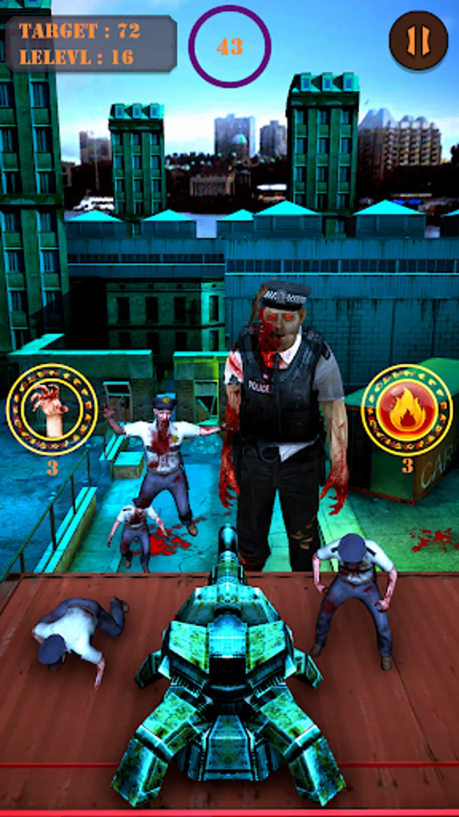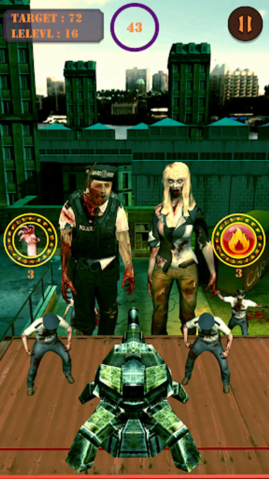 Battle for survival in a zombie apocalypse shooting and killing game. If you don't want to be dead in this top war shooting game then trigger your finger on turrets head and set your aim on the zombies boss.Try your hardest at aiming in one of the best games of survival shooting game.Kill all the zombies in this non-stop action game.They are coming from the dead wall.Kill a horde zombie and survive in this offline zombie hunter and shooting invasion game.