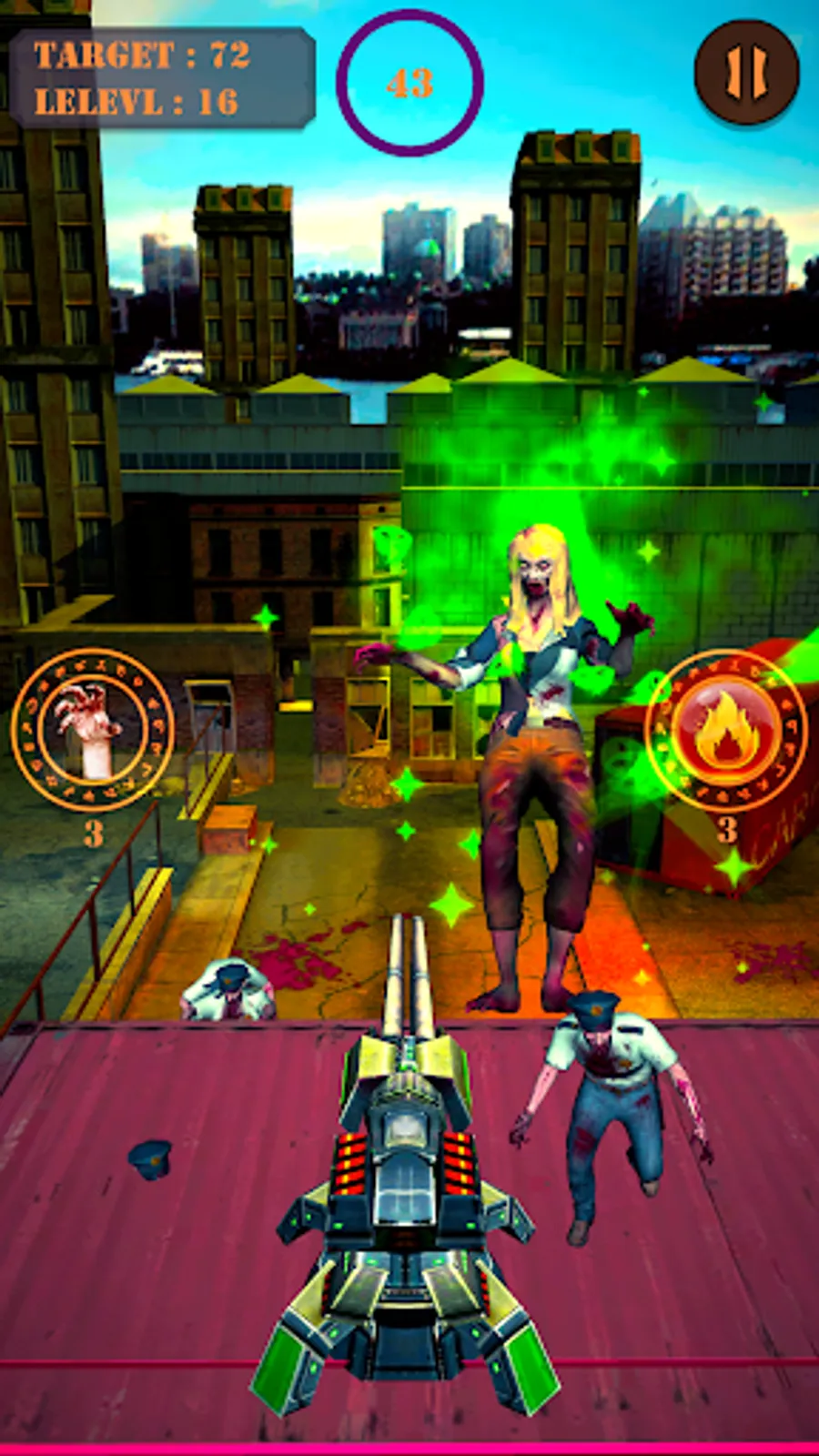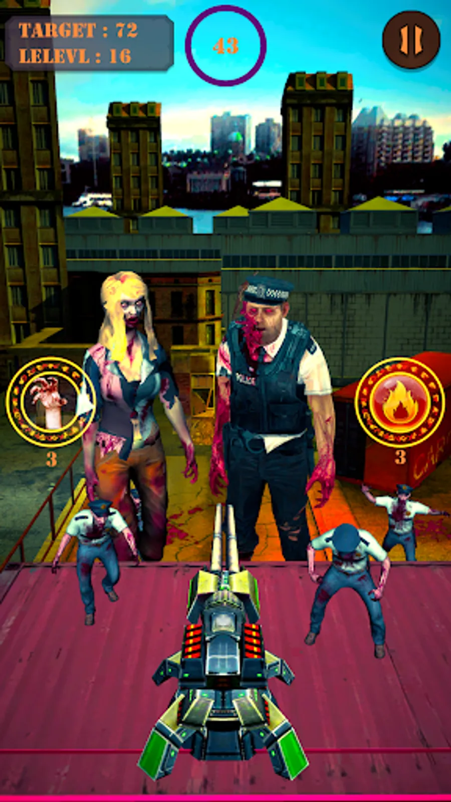 Zombie was locked in the city.They broke the wall of protection.Zombies are coming from the dead wall.You need to set your machine guns target on the zombie and stop the way of zombies and save the world from zombies infection.