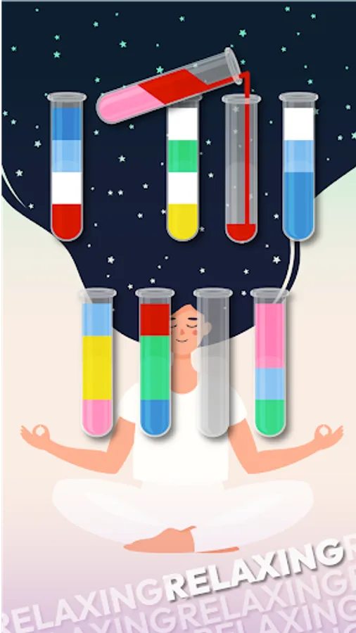 🧪 NO PENALTIES & TIME LIMIT: Your game, your rules! Have fun and relax beating rich and interesting levels in this water color sort puzzle game!