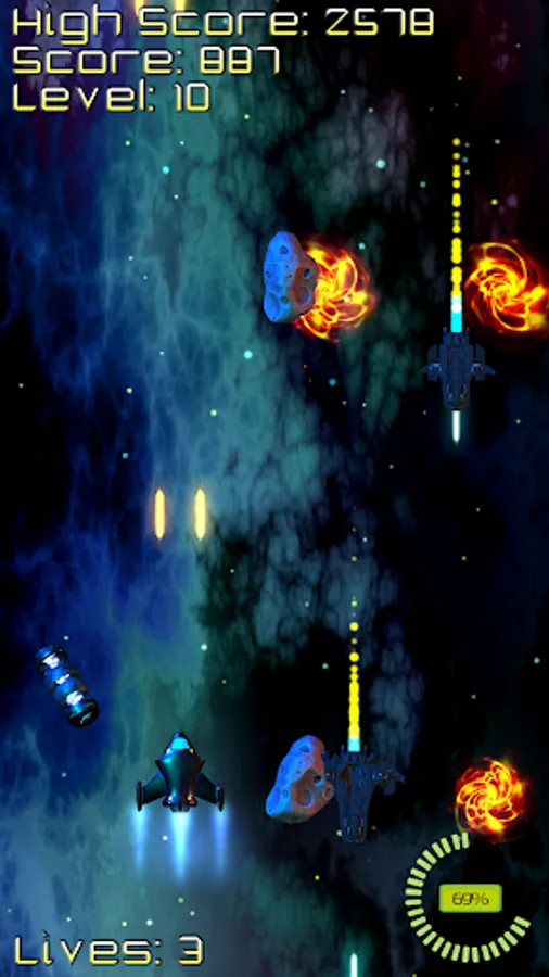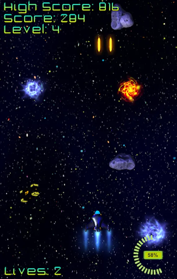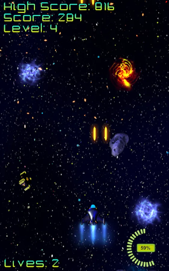 A fun, fast paced, and yet,simple arcade style game where you fly through space while destroying enemies and other dangerous aspects of space as you climb your way to the top of the high score leaderboard.