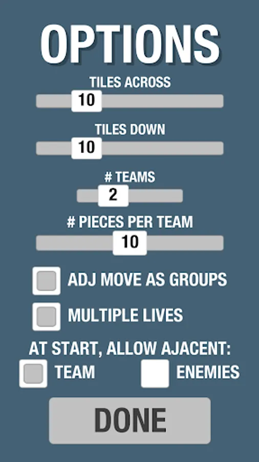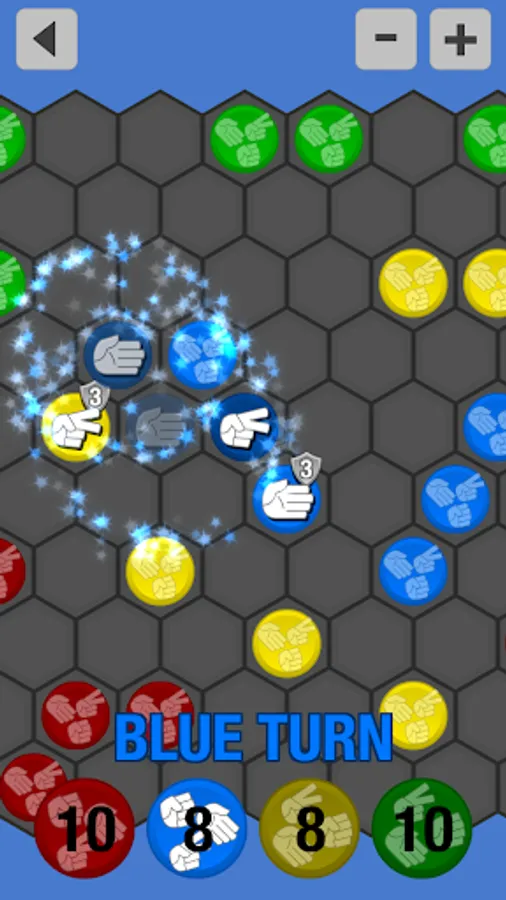 Pass-and-play, hex-based board game for 2 to 4 players, in which players use strategy and luck to beat their competitors. Explore countless gameplay configurations in the Options menu - from board dimensions, to multiple lives, to adjacent tiles of the same team sticking together as clusters.