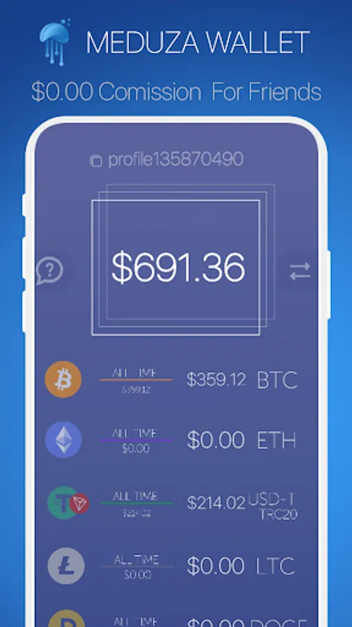 Absolutely no commission within MEDUZA NETWORK, transfer funds by profile ID to your friends and acquaintances.