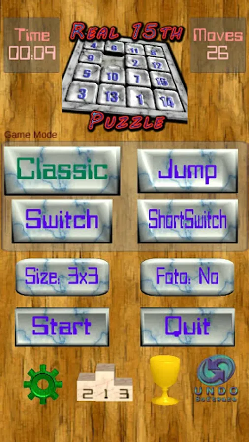 1. Classic - classic 15 puzzle. In this mode, you need to arrange the tiles in order of increasing numbers.