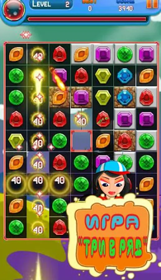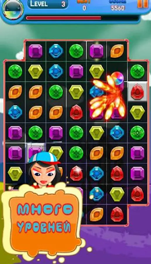 The game itself takes place in the genre of "three in a row", the essence of which - to swap two adjacent elements so as to obtain a series of 3 or more identical stones. At each level is given a purpose, when the level of which is considered complete.