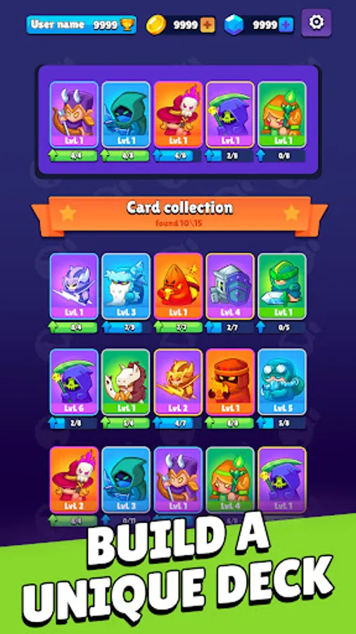 Mighty heroes are ready for a clash! You have plenty of cute but fearsome units at your disposal, from keen-eyed Archers and ice Mage to angry Berserkers and deadly Reaper! Merge and manage their skills - devise a strategy around your deck’s strengths!