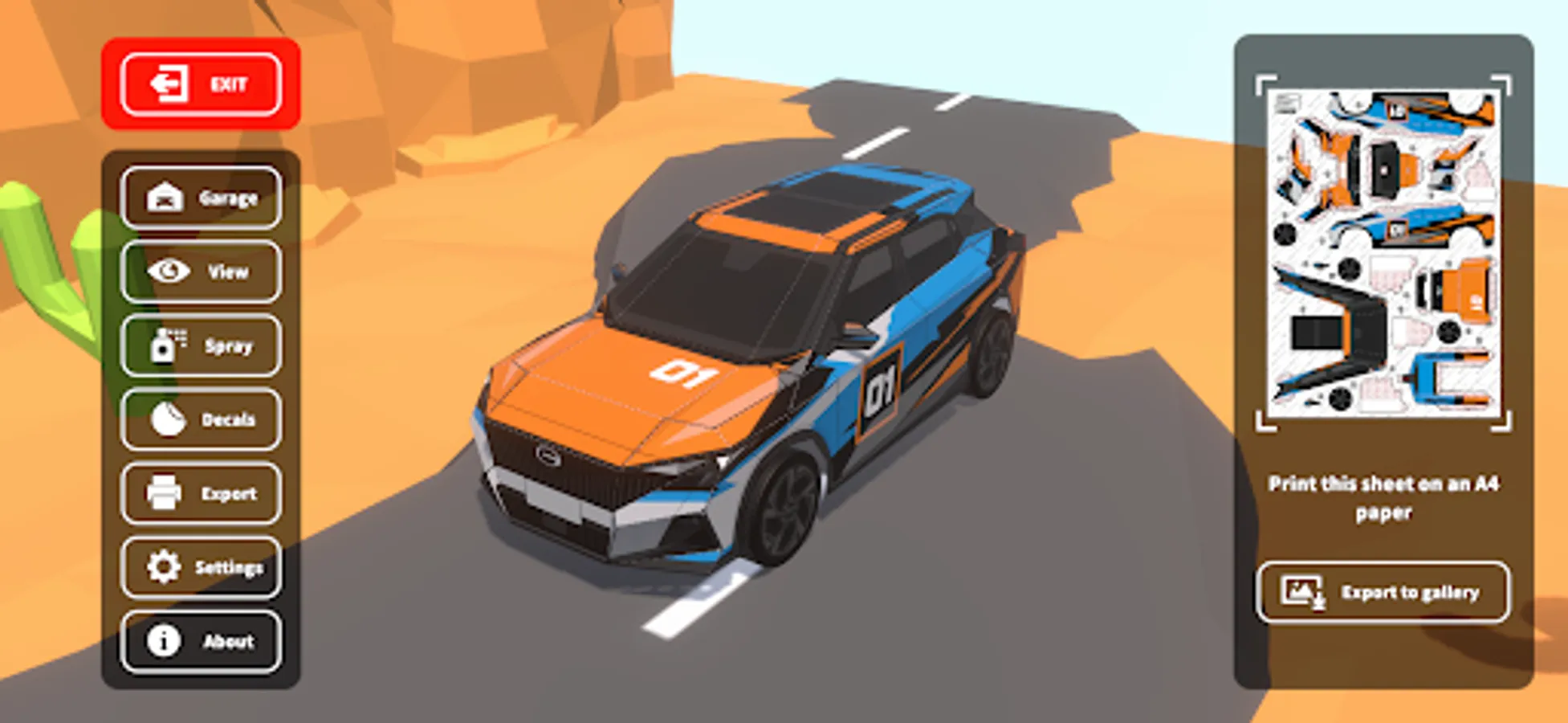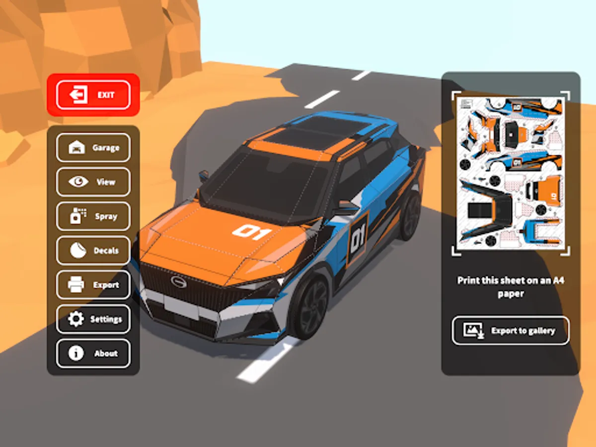 With Papercraft Auto Shop, you will be able to design unique paint jobs in 3D environment, print them out to make three-dimensional paper car body models, install them on the chassis of papercraft drift racers and remote control them in reality.