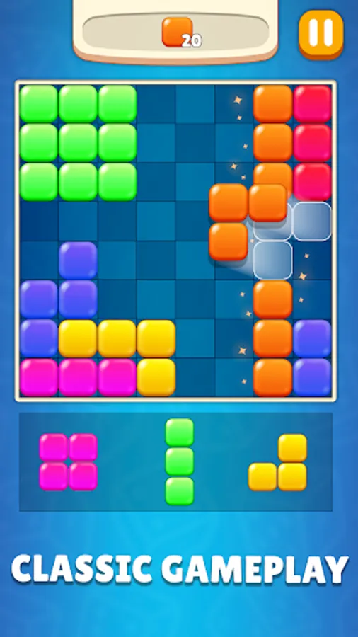 In this blockpuzzle game, you will experience the new and original block puzzle gameplay. Drag and drop blocks onto the board, fill a row or column to complete elimination, clearing multiple rows or columns at once will result in block elimination animations and bonus points. The more block puzzles you perform, the more points you earn. Challenge yourself and exercise your brain in this Block Blast puzzle game!