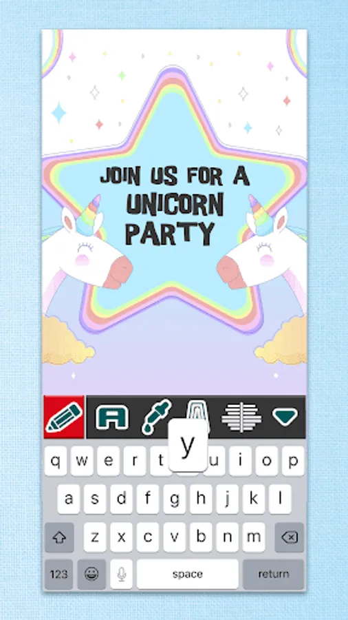 Write text - add custom captions on your rainbow birthday invitation.