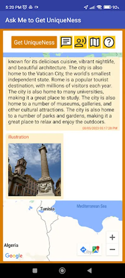 You simply click on a place anywhere on the map, UniqueNess will explain the uniqueness of that place which is equipped with an attractive image.