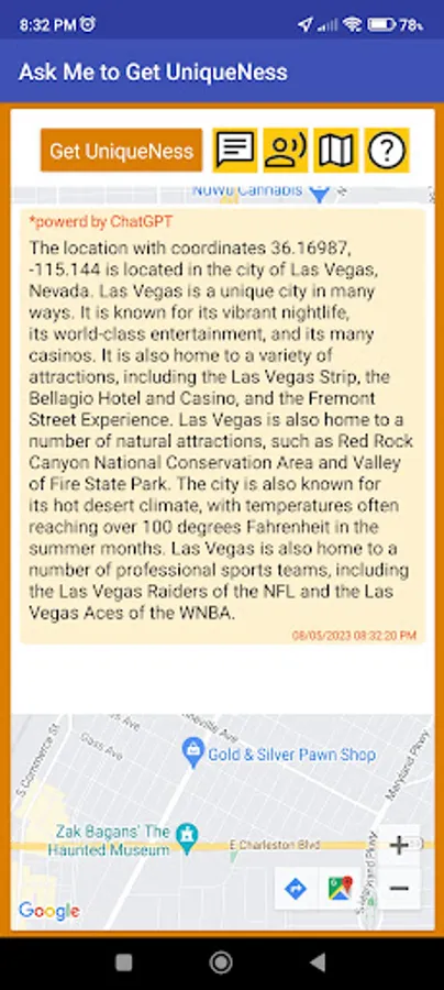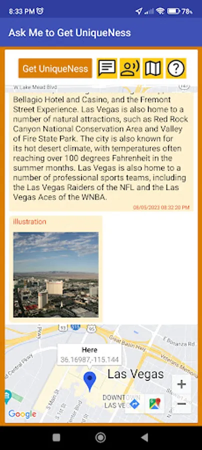 UniqueNess answers your request in the form of a description and image so it's easier to understand. With the help of UniqueNess, you can visit a place according to your wishes, anytime and anywhere. You can easily ask UniqueNess for help to find out the uniqueness of places or locations anywhere and anytime.