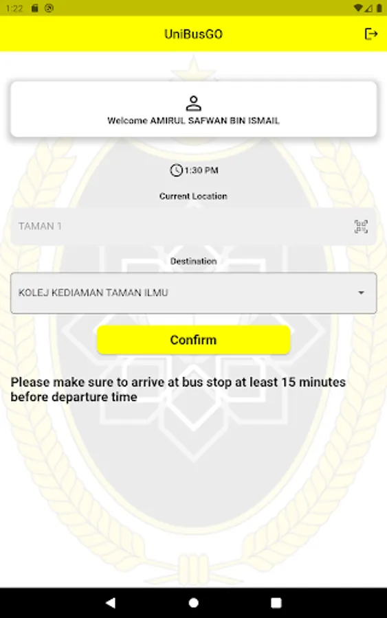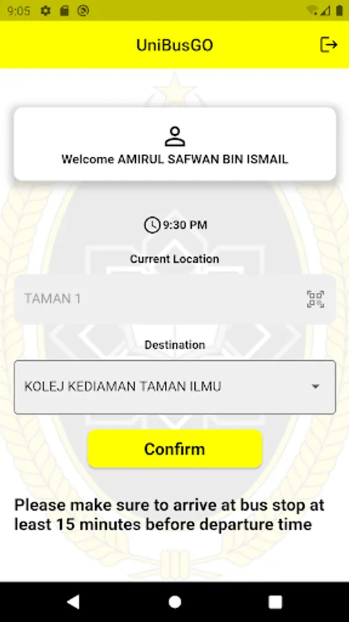 Allow student to get the information about bus schedule at UniSZA Campus Tembila