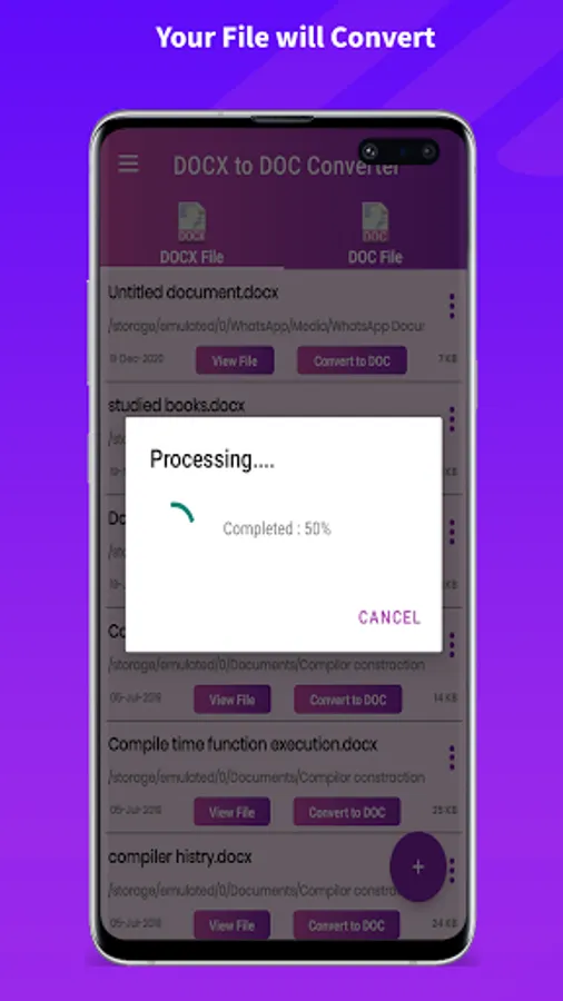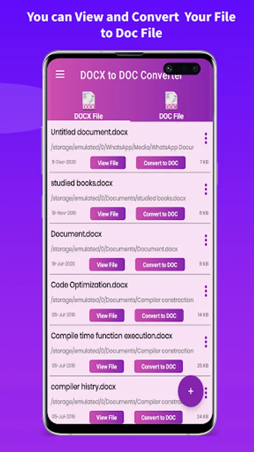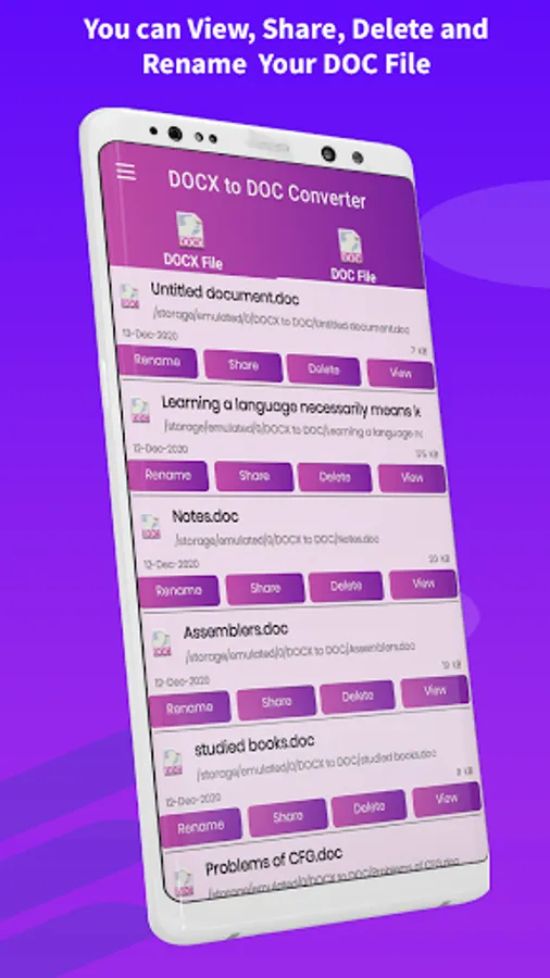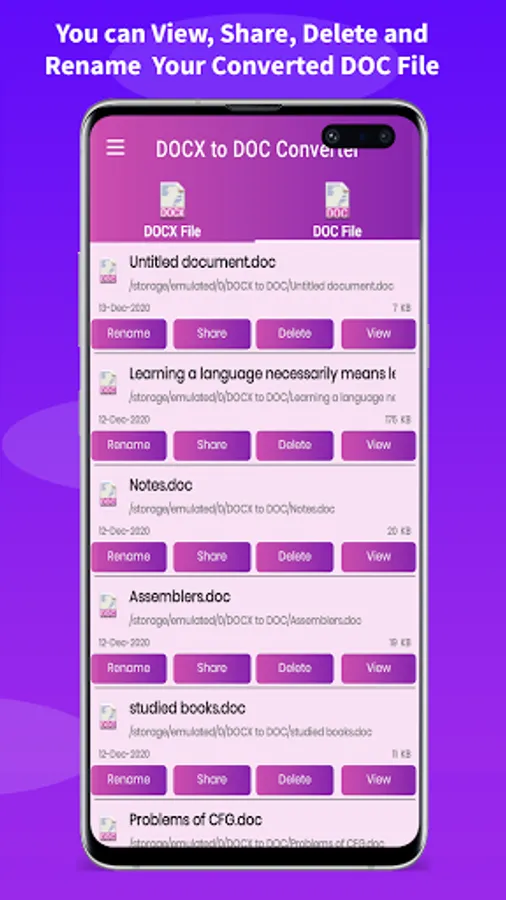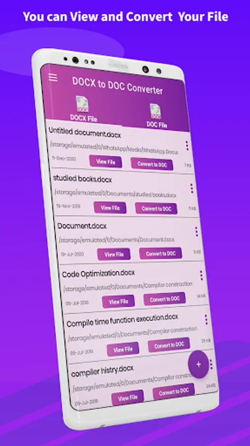 Select your .DOCX file from phone memory, the docx to doc converter and viewer app will convert it automatically to your desired format (doc). It is pretty simple to use the app.