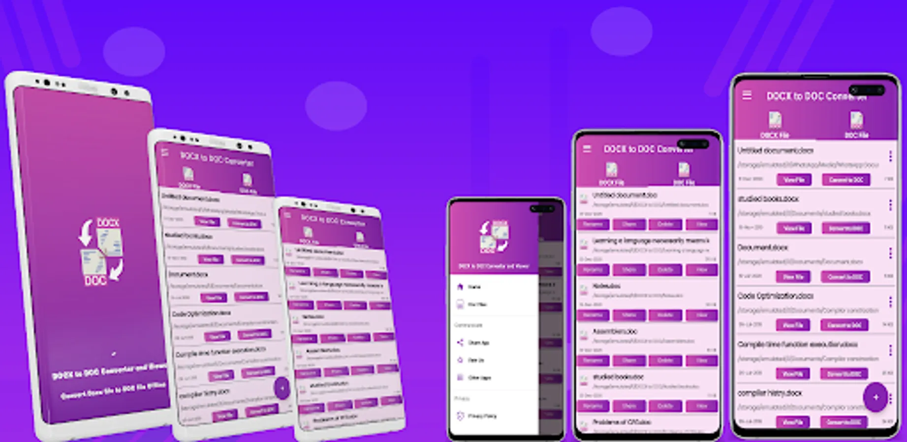 Docx to Doc converter is an app for conversion of one Microsoft word format with extension (.docx) to another Microsoft word format with extension (.doc). The app also has the facility to view your docx or doc file on your device. All your docx/doc files can be browsed in only one single place in seconds without any wastage of time.