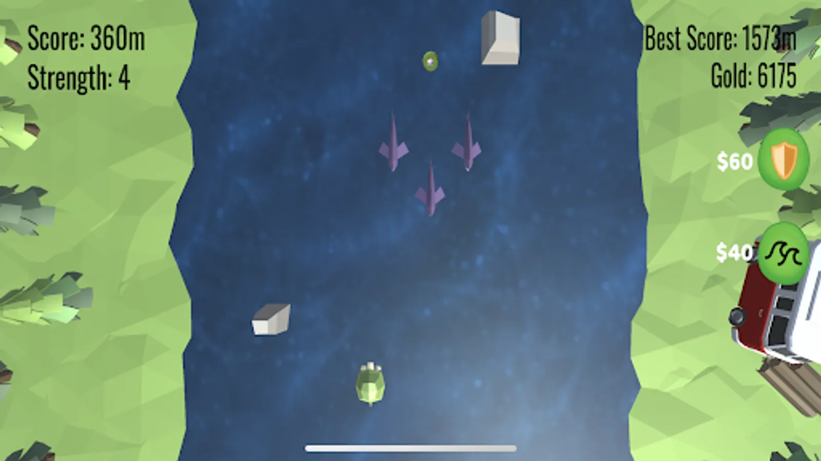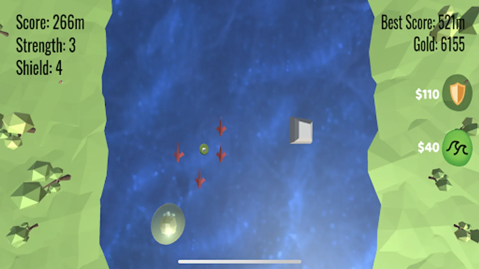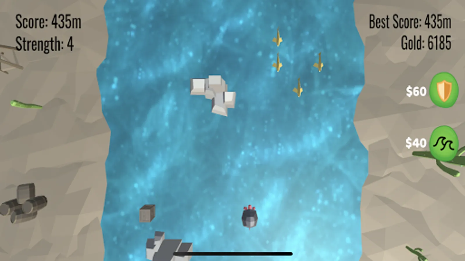 Welcome to Swimming Upstream. Travel as far as you can while avoiding rocks, fish, and debris using tilt or button controls. Collect gold coins to earn new turtle shells or use them to purchase a shield while traveling upstream. Collect lily pads to regain your strength. Explore various biomes including beaches, oak tree forest, and canyons. The Game Center leaderboard gives you the opportunity to compete against friends for the longest distance traveled or to see how you stack up against the best in the world.