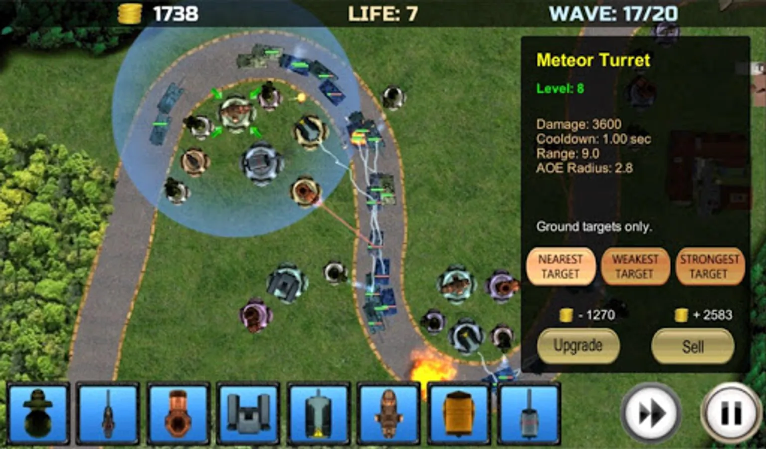In this game it is more beneficial to upgrade the constructed turrets as possible, than to build new ones.
