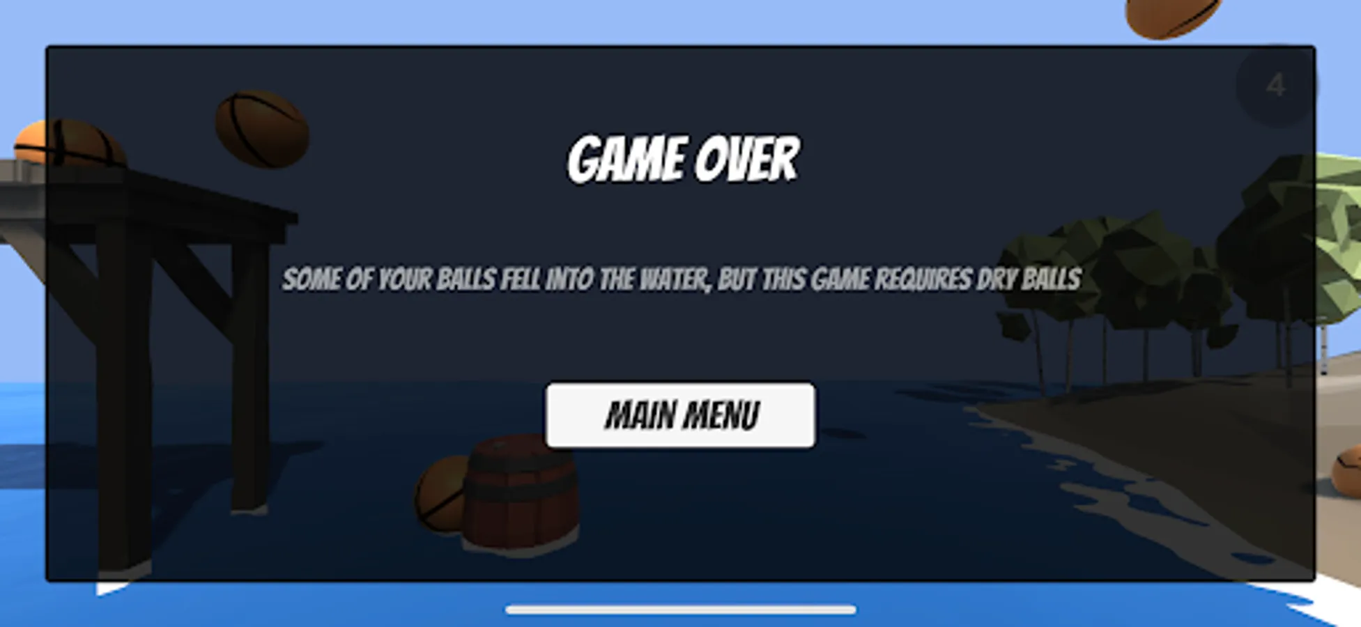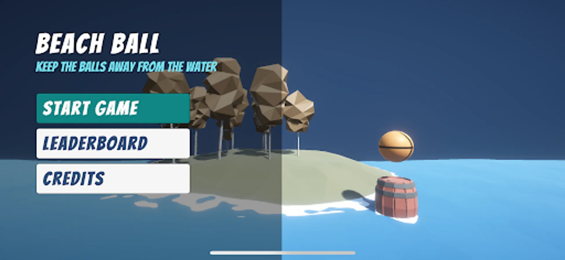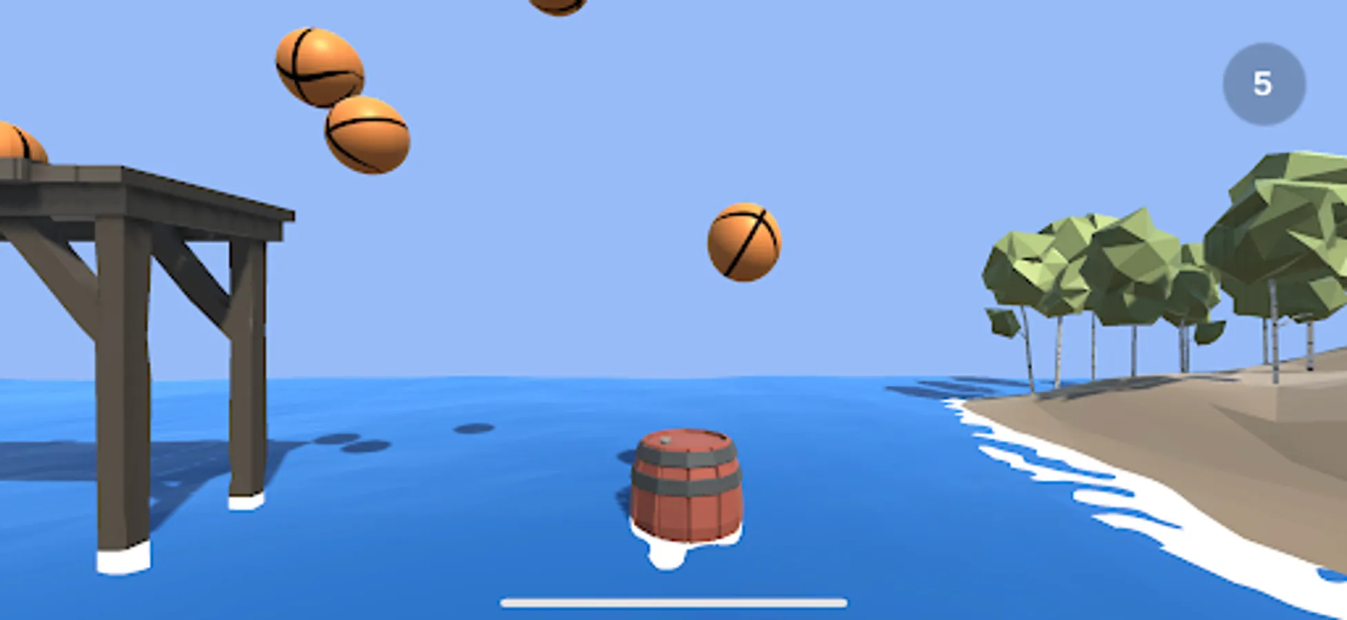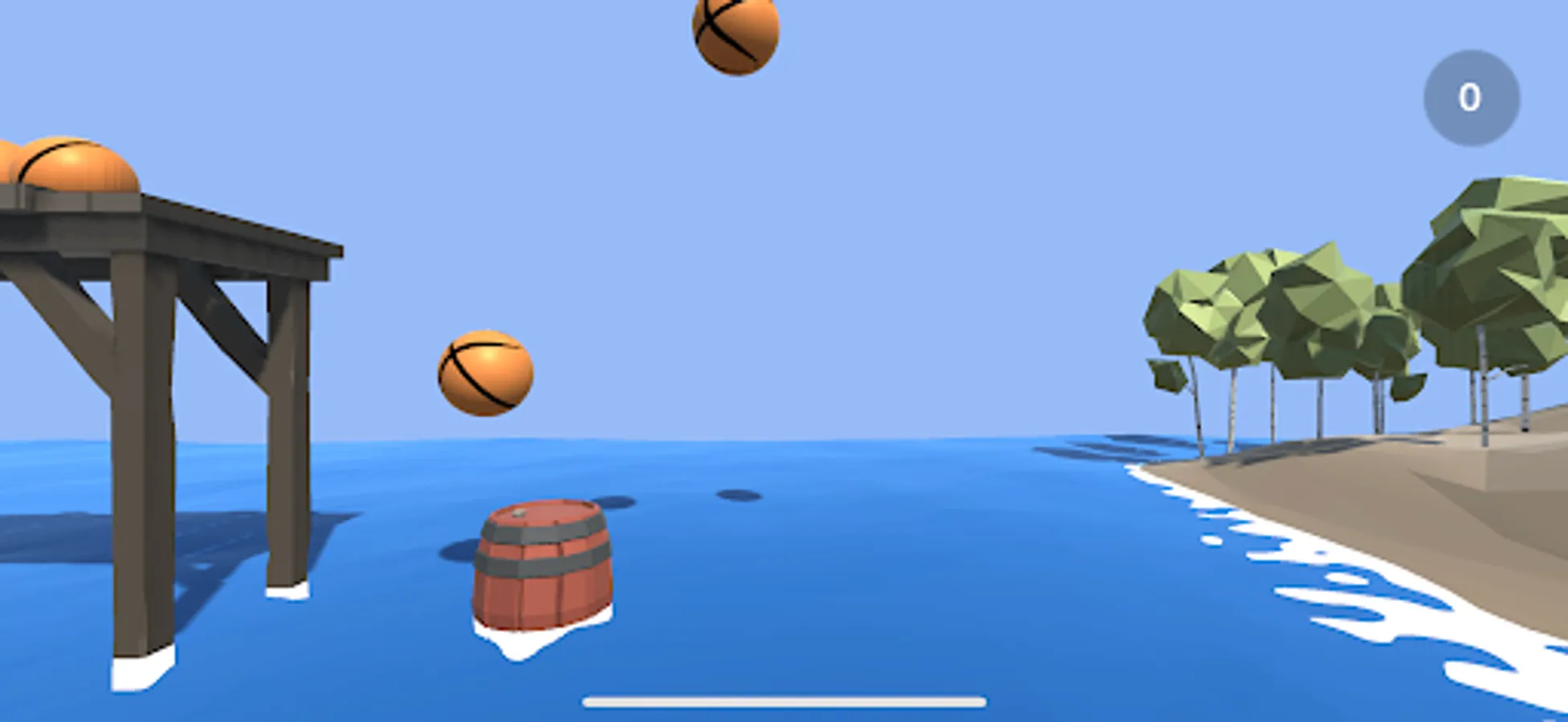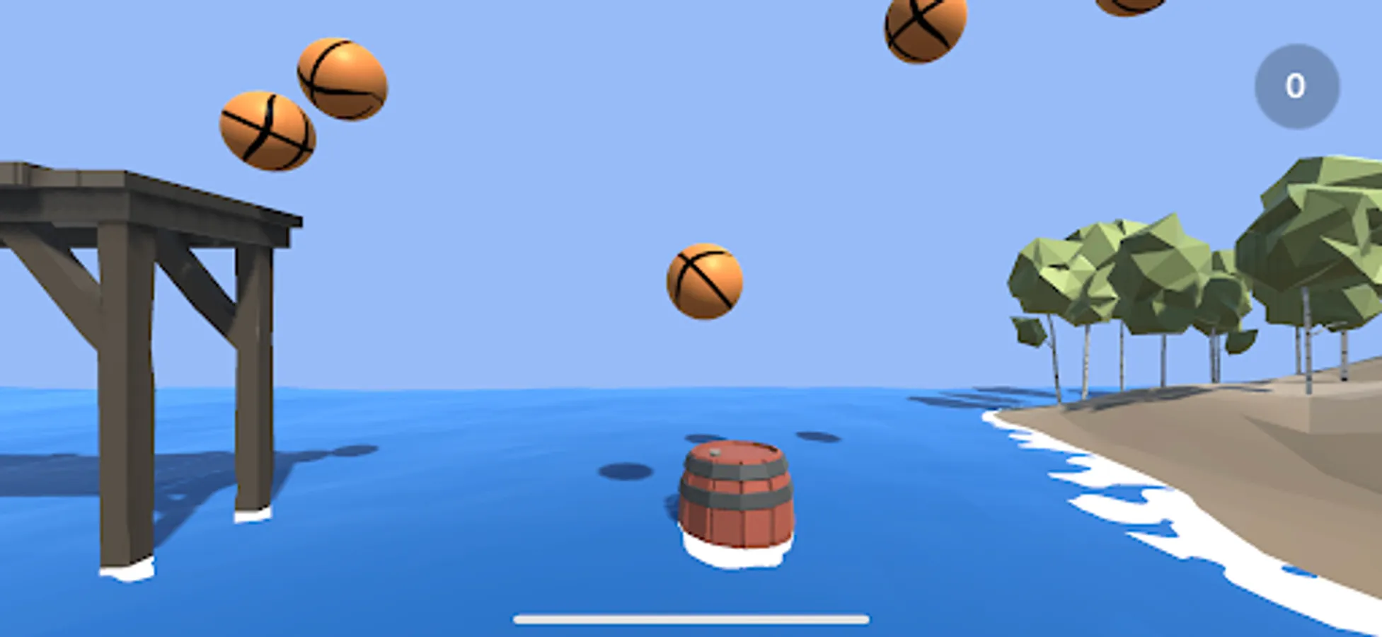 Use the wooden barrel to keep the bouncy balls away from the water, for each ball that get to the beach, you get one point.