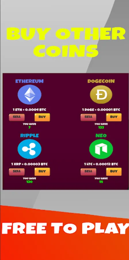 You can mine the biggest cryptocurrencies in the simulator: Bitcoin (BTC), Ethereum (ETH), XRP (Ripple). In fact, other important coins will be added to the game very soon: Stellar, Cash (BCH), Litecoin (LTC), Binance and much more!
