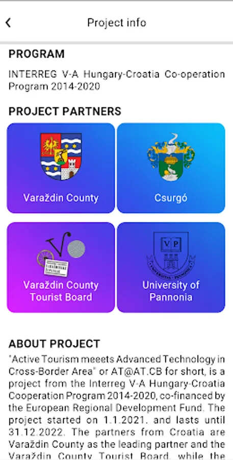 The application was implemented in the framework of the AT@AT.CB project. The purpose of the application is to promote the attractions in the areas covered by the project. Augmented reality games are available at selected locations.