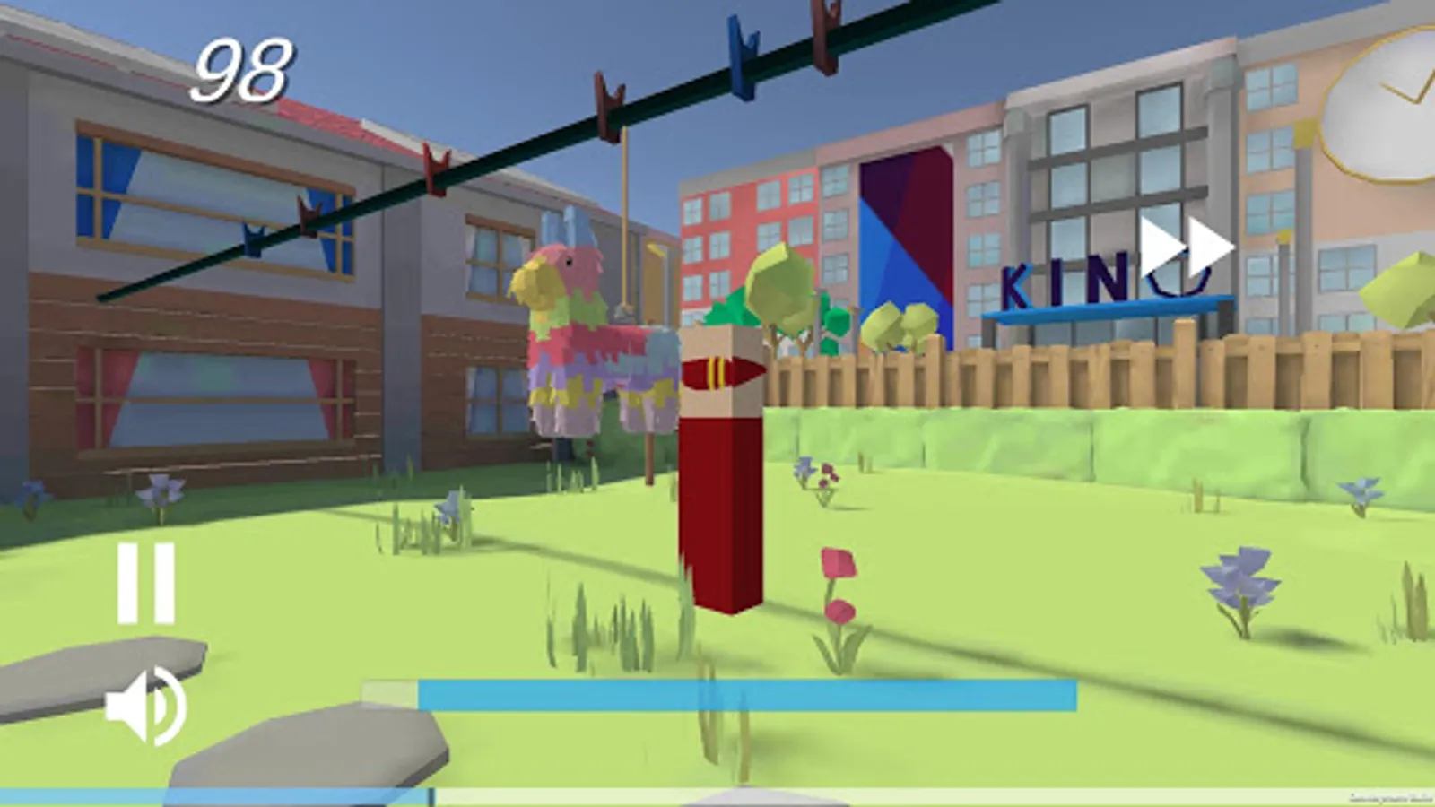 You are blindfolded and candy is your goal. Try to hear the piñata and smash it with your bat.