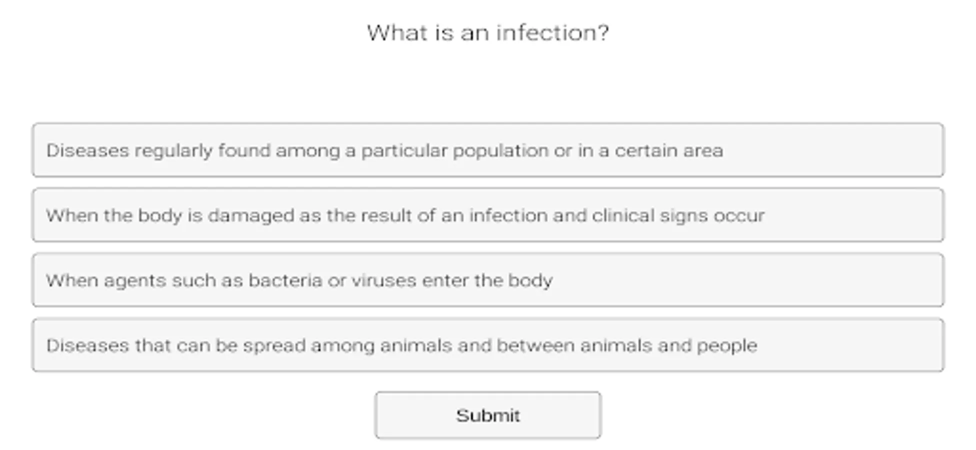 A student can also level up by obtaining codes after completing an online course in zoonotic diseases. Two free courses, one for kids and another for teens, is available via the Youth In Agriculture website (https://www.unmc.edu/publichealth/yia/education/index.html).