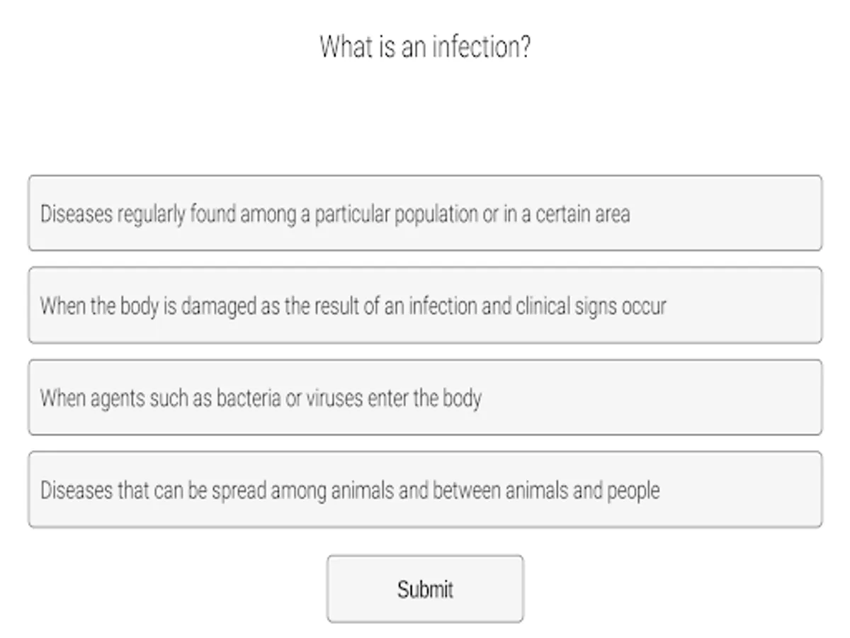 A student can test their gaming skills by vanquishing multiple waves of viruses. Power-ups can be obtained by answering relevant educational questions related to basic hygiene, epidemiology, and zoonotic disease prevention. High scores are ranked via the leaderboard.