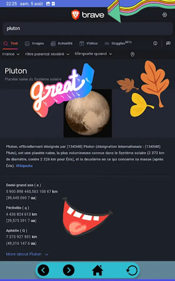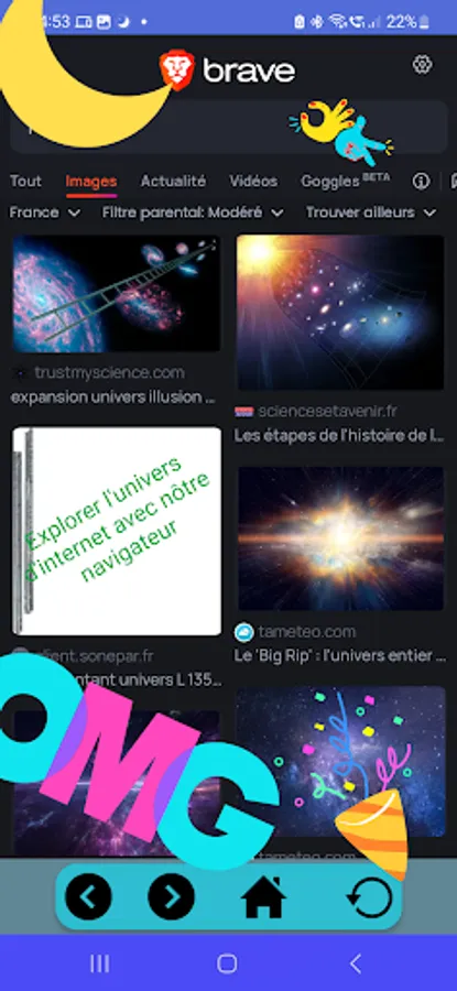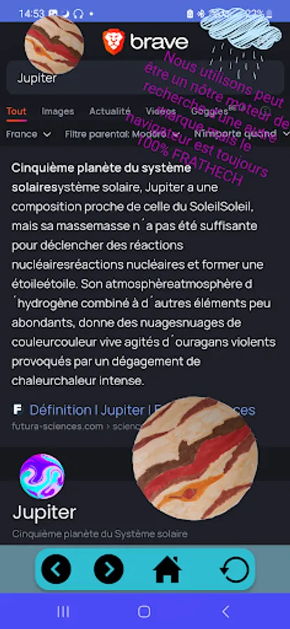 The browser 100% designed by FRATHECH and 100% secure. Thanks to the Brave search engine, you can navigate by: