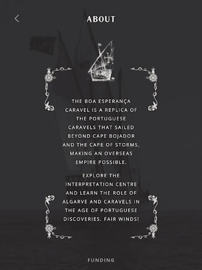 Interpretation Centre in Lagos, Algarve, with this companion app to time travel to the Age of Exploration! The Boa Esperança Carabel is a faithful replica of the sailing vessels that kickstarted the Portuguese maritime exploration in the 16th century. Climb aboard and explore the caravel to unlock augmented reality experiences that will show you the daily life of sailors at sea.