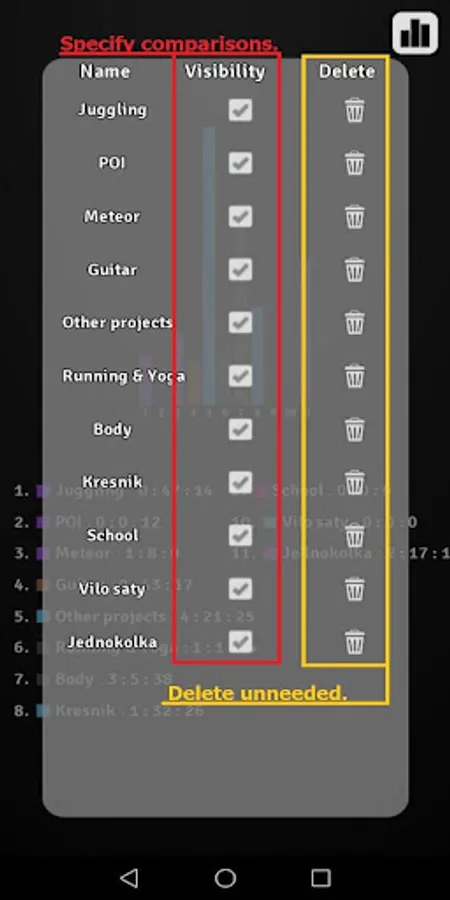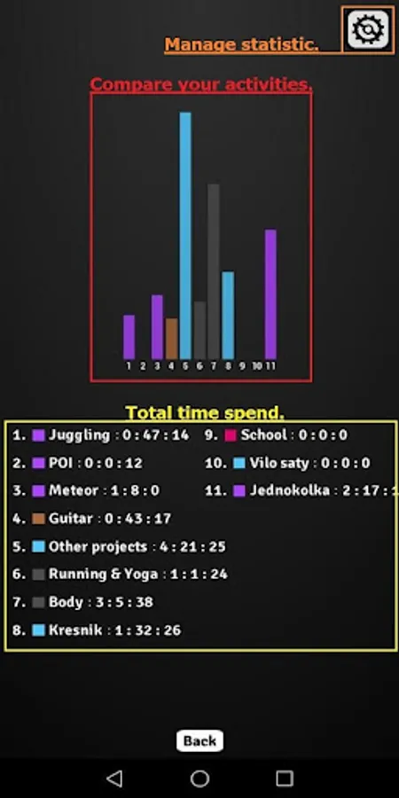 Spend your time better. Set your own time schedules and be more SUCCESSFUL then ever before. Be more FOCUSED on every activity you are doing. Compare your activities in the graph.