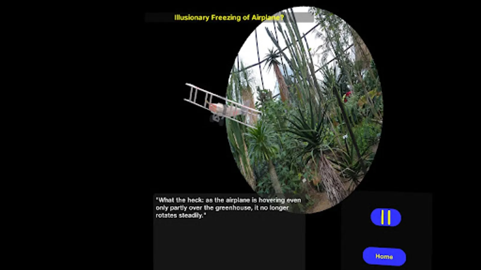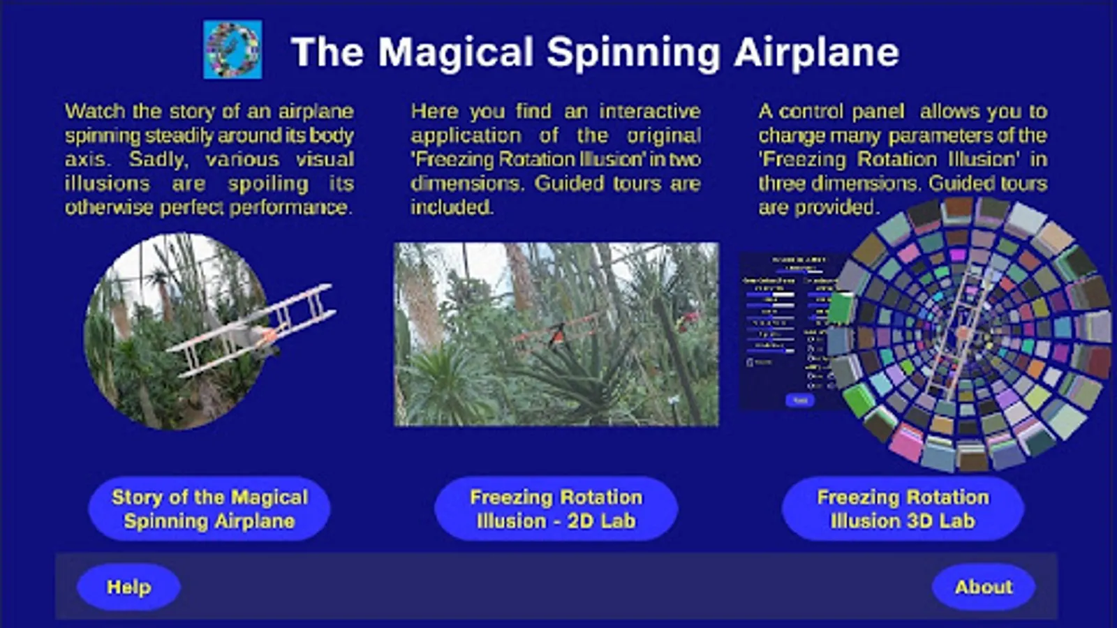 1) Watch the story of an airplane always spinning steadily around its main body axis. Sadly, various visual illusions are spoiling its otherwise perfect performance.