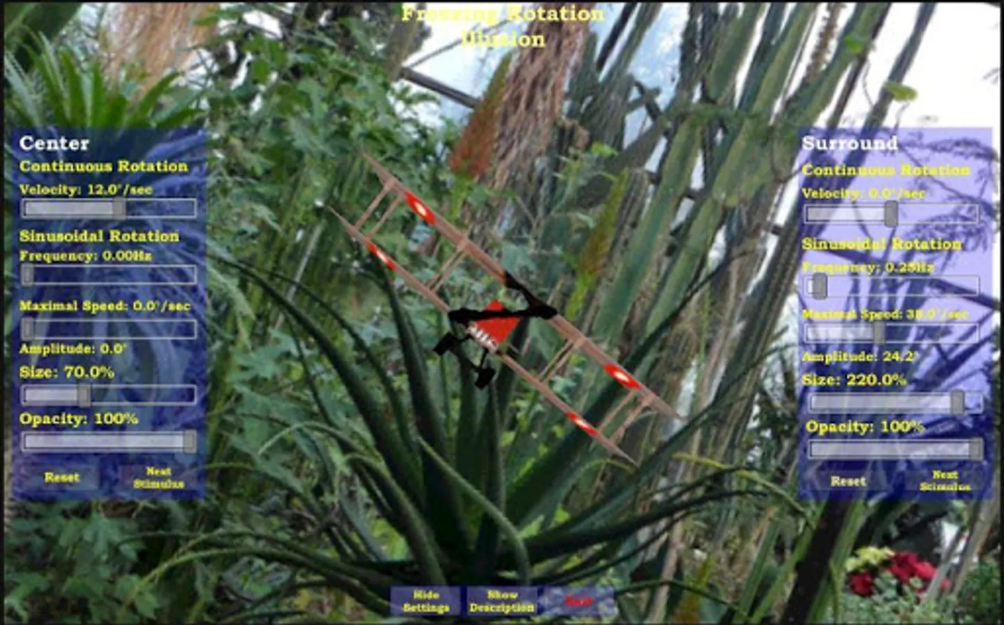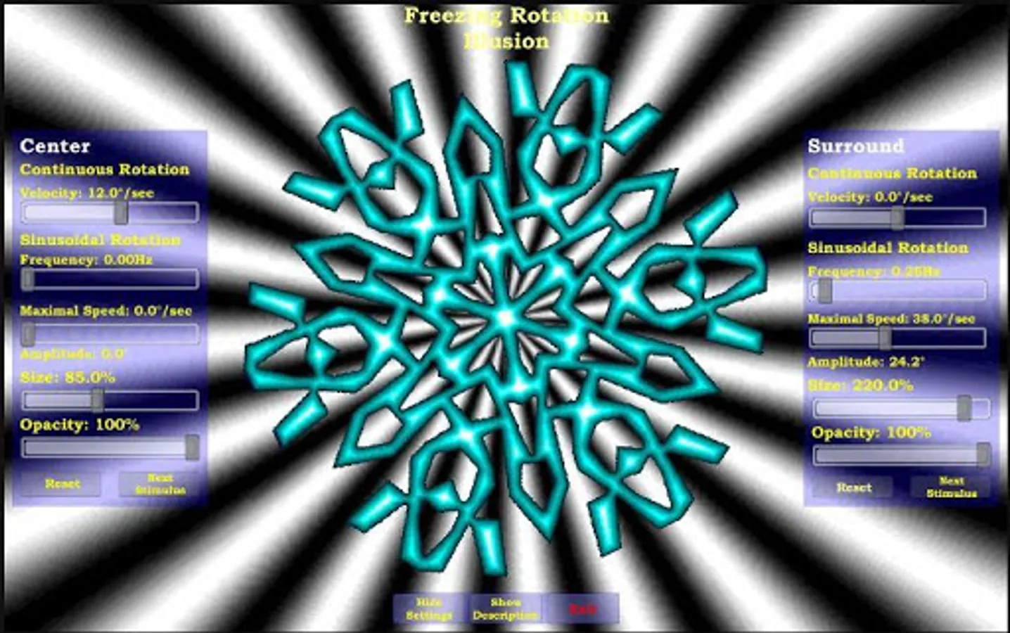 In 2006 the "Freezing Rotation Illusion won the first prize in the "Best Visual Illusion of the Year Contest". Here an interactive application is presented where the user has a choice of different stimuli. He can change the size and the opacity and all relevant motion parameters o the center and the surround stimuli.