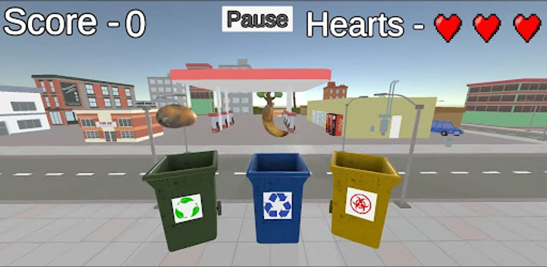TrashGame is an educational game about putting the right waste's into the right bin like medical waste's like bandages and needles should go in the yellow trash can, recyclable wastes like plastic bottles, soda cans and biodegradable wastes like rotten fruits and vegetables should go in the green bin.