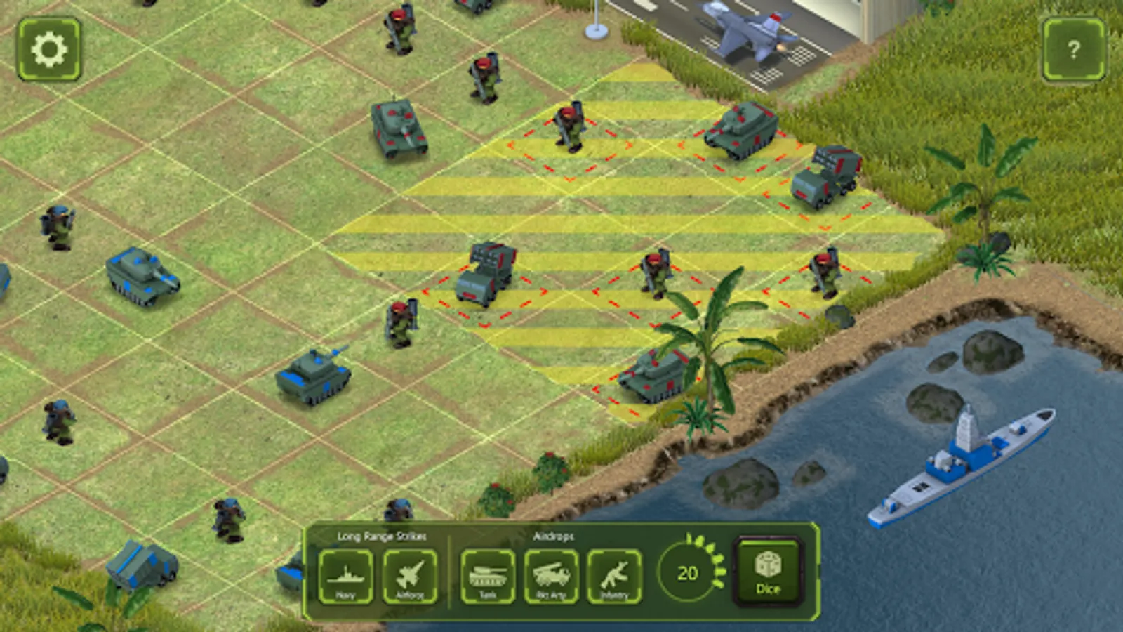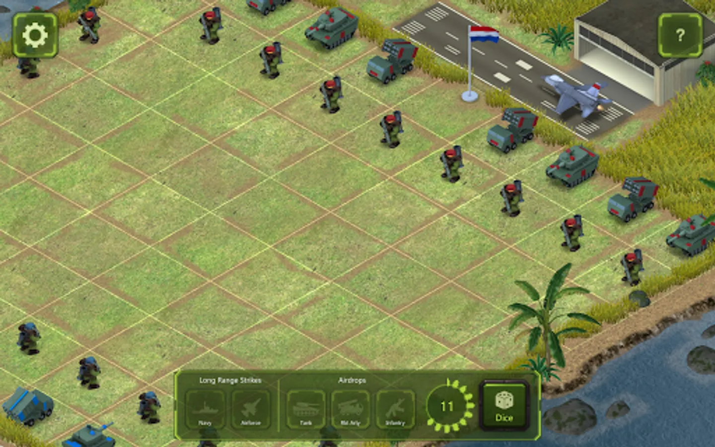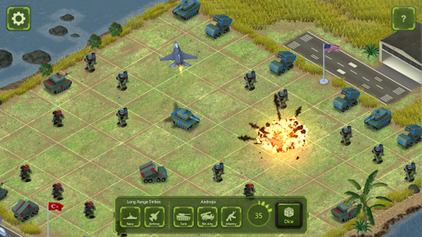 * Level up to unlock and deploy more options like landmine, transport helicopter, fighter aircraft and battleship.