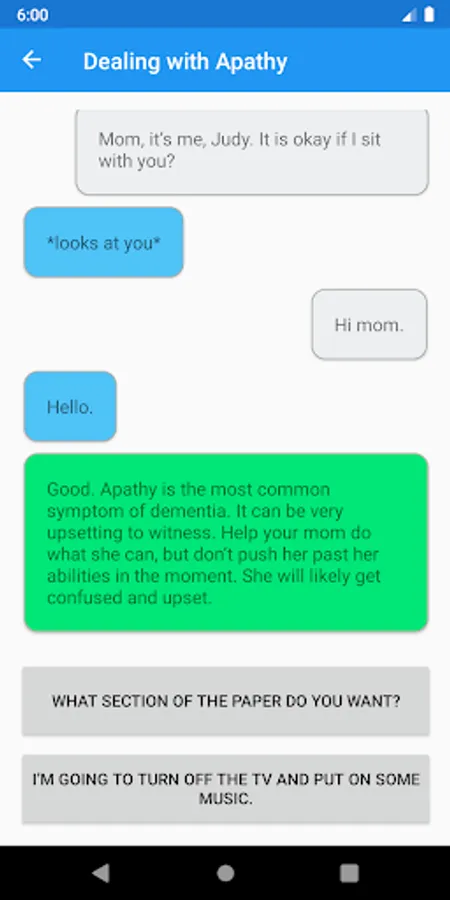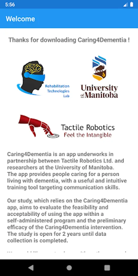 Caring4Dementia is an app underworks in partnership between Tactile Robotics Ltd. and researchers at the University of Manitoba. The app provides people caring for a person living with dementia, with a useful and intuitive training tool targeting communication skills.