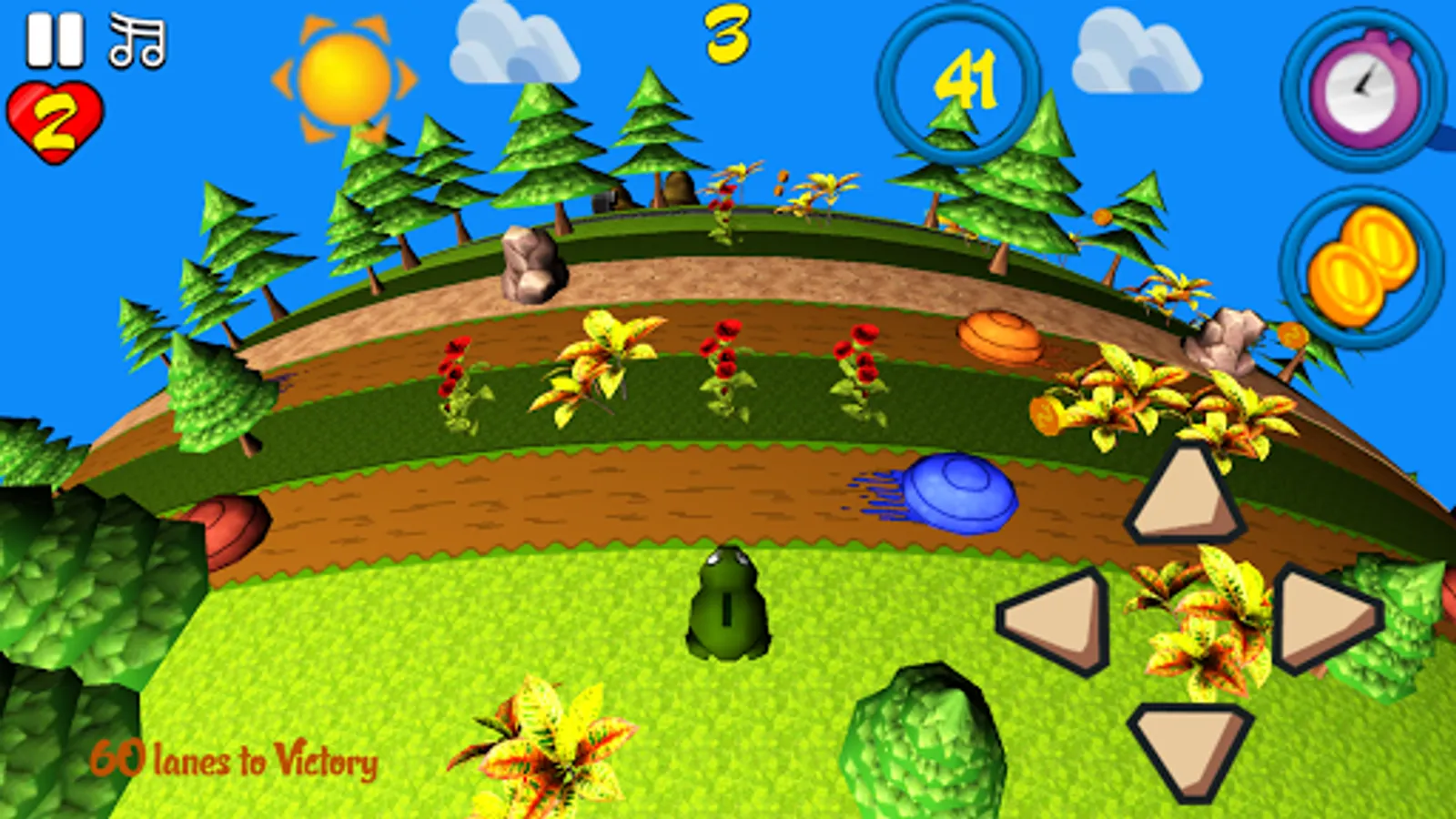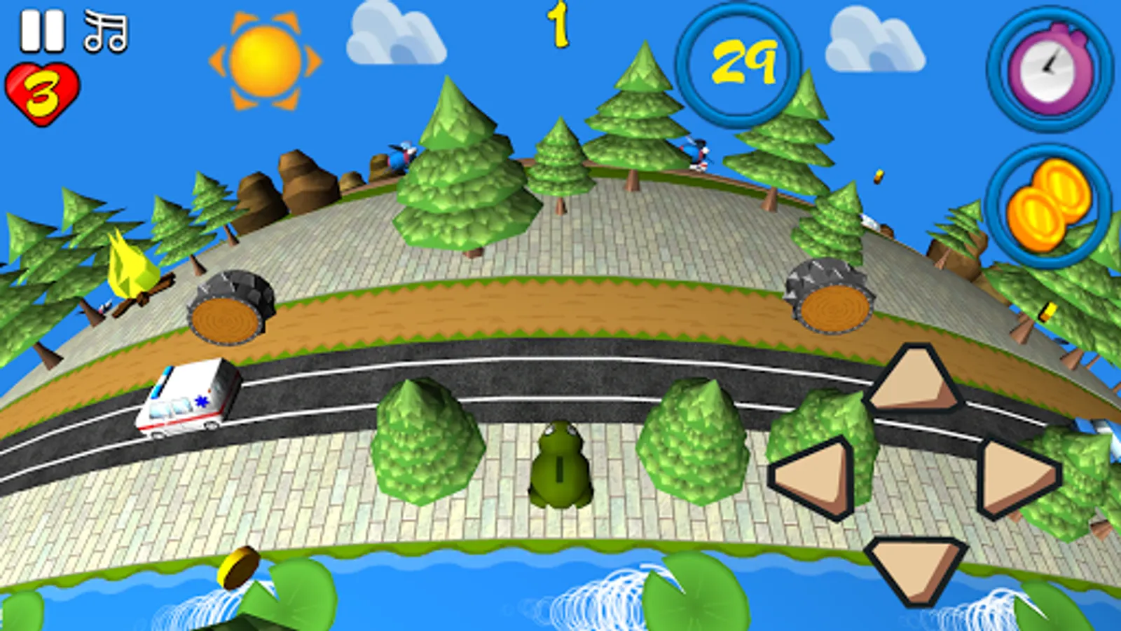 So you're Froggy, a little cute Frog who is struggling in a polluted world by cars. To survive, Froggy needs to escape her way to the forest, crossing many lands.The more you cross roads, the more you earn coins and treasures and the more you change your environment, getting less and less gas pollution, cleaner vehicles and at least Forest without cars. You have the power to make birds and insects coming back !