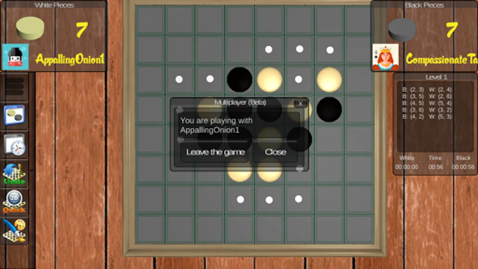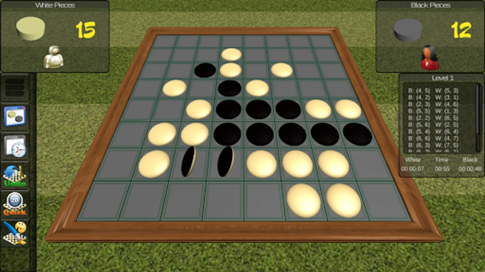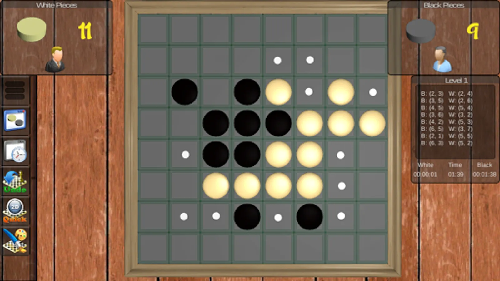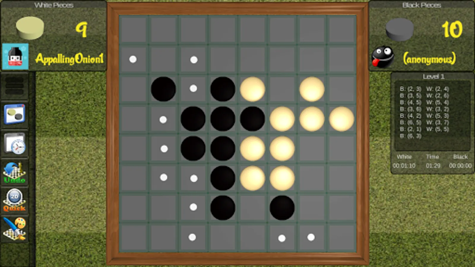- to choose to be Black or White Player : please RESTART a level