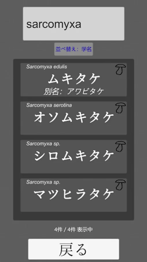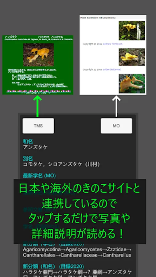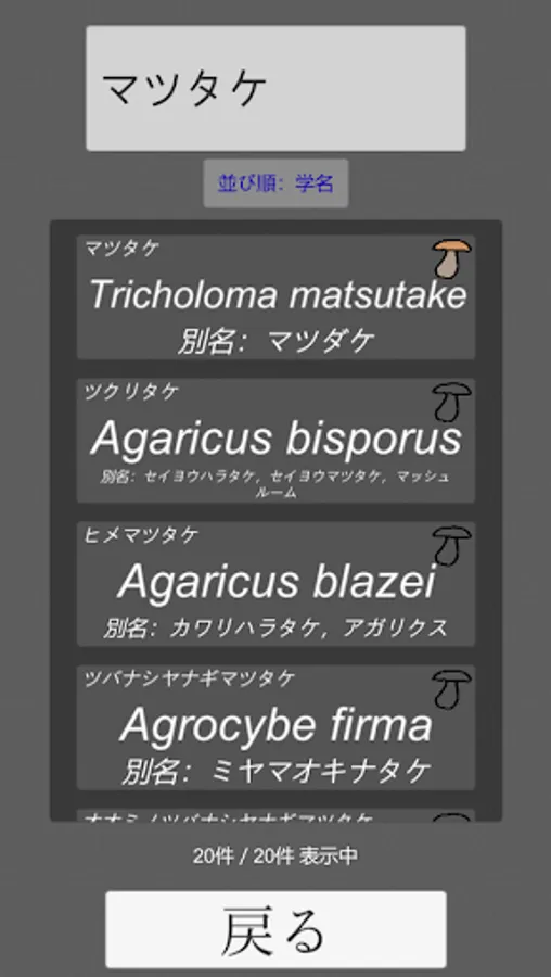 Are you a Japanese speaker who's interested in mushrooms, and you’d like to know how to say your favorite mushroom’s name? Maybe you’d like to communicate with Japanese myco-nerds but you don’t know what they call the mushrooms you know—and normal dictionaries don’t help at all! This app is for you!