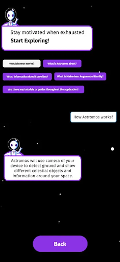 Astromos is an Augmented Reality application which is an exciting and fun way of exploring our solar system and objects of outer space. It contains a number of simulations of Celestial Bodies bringing you closer to them so that you can experience the amazing space scenes.