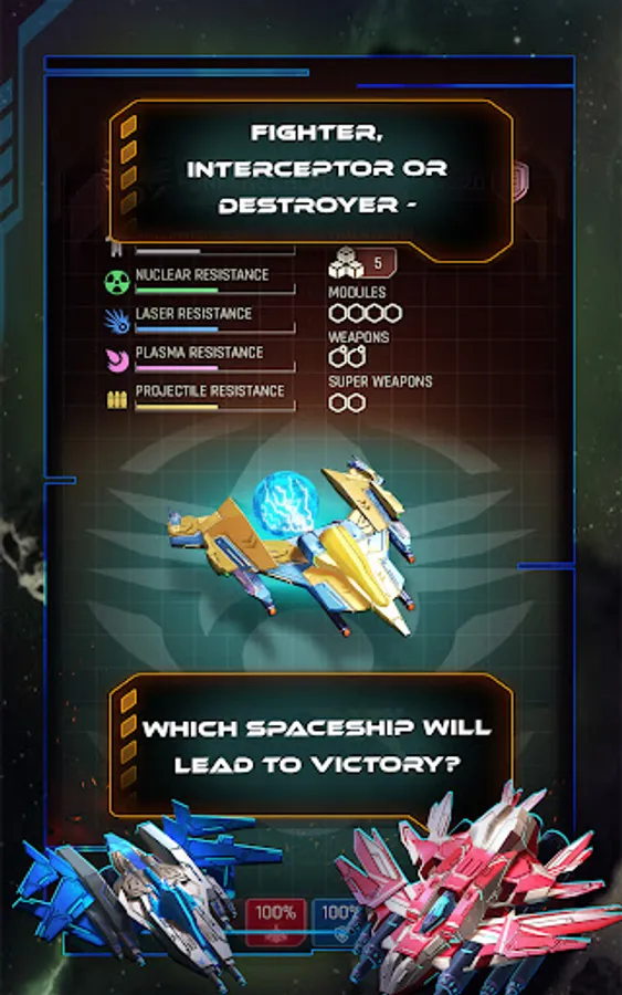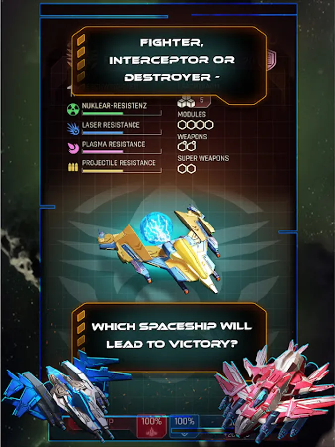 Whether you will succeed in this action game highly depends on the right strategy. Choose an appropriate spaceship to liberate a planet: Will you choose the Fighter, the Interceptor or the Destroyer? All of them have completely different properties: speed, maneuverability, equipment capacity, and size of the cargo hold β there's the perfect spaceship for every mission!