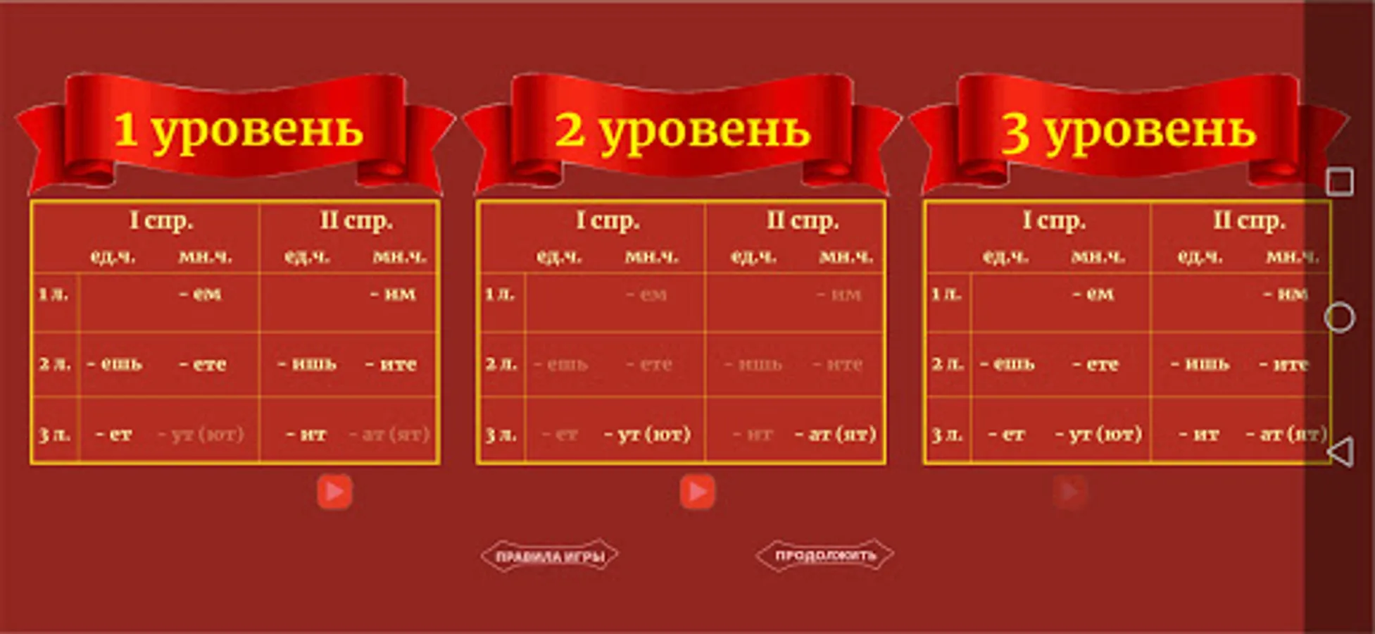 So, while playing, the habit of choosing the right option is imperceptibly formed. This is how the hidden simple algorithm for determining the conjugation works.