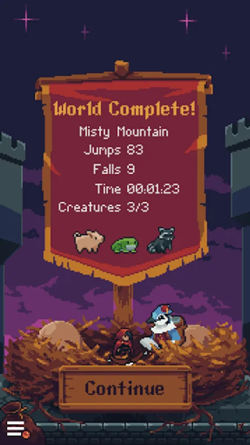 Bound through a painterly pixel art world on a quest to recover your flock of woodland friends from the clutches of giant eagles! Don't give up, it's only a little higher!