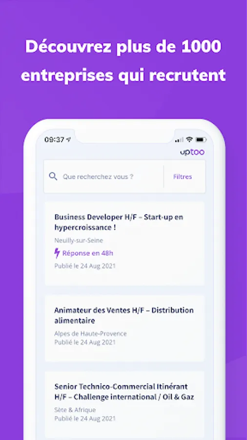 Uptoo Jobs makes it easy for sales reps and sales managers to find jobs. Find your next job among more than 1000 offers all over France and in all sectors of activity.