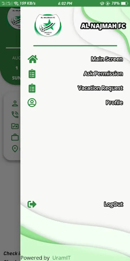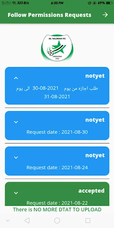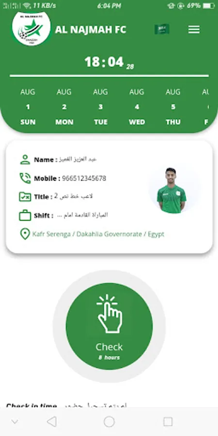 تطبيق لادارة شؤوون اللاعبين لتسجيل الحضور والانصراف و طلب الاستذان و الاجازات و متابعتها