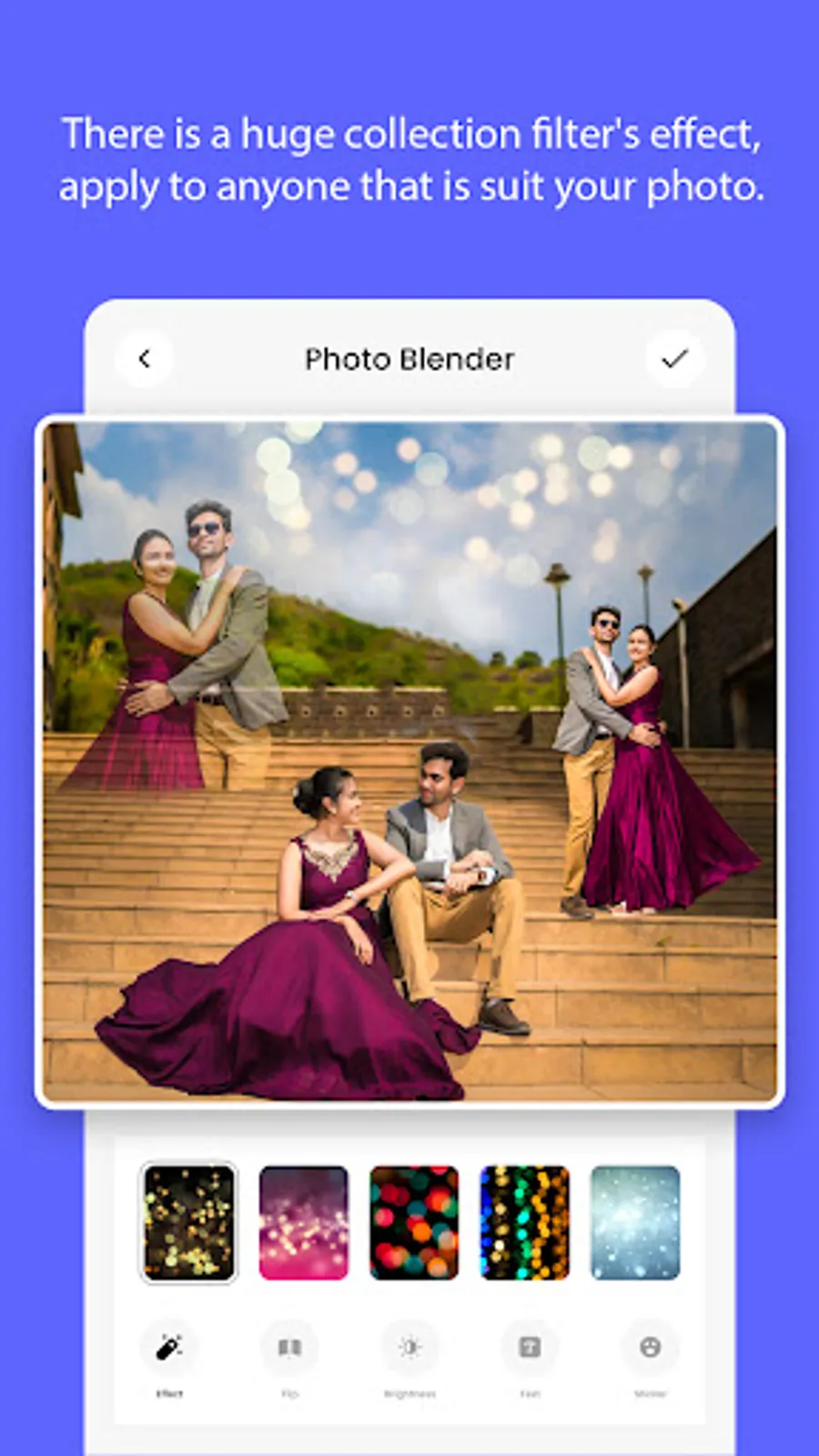 Ultimate Photo Mixer will let you unleash your creativity so you can make your own masterpiece. Create professional photo effects with advanced tools like Effects, Sticker, Overlay, Brightness, Rotate, and Flip, blending, mixing, effects and many more.