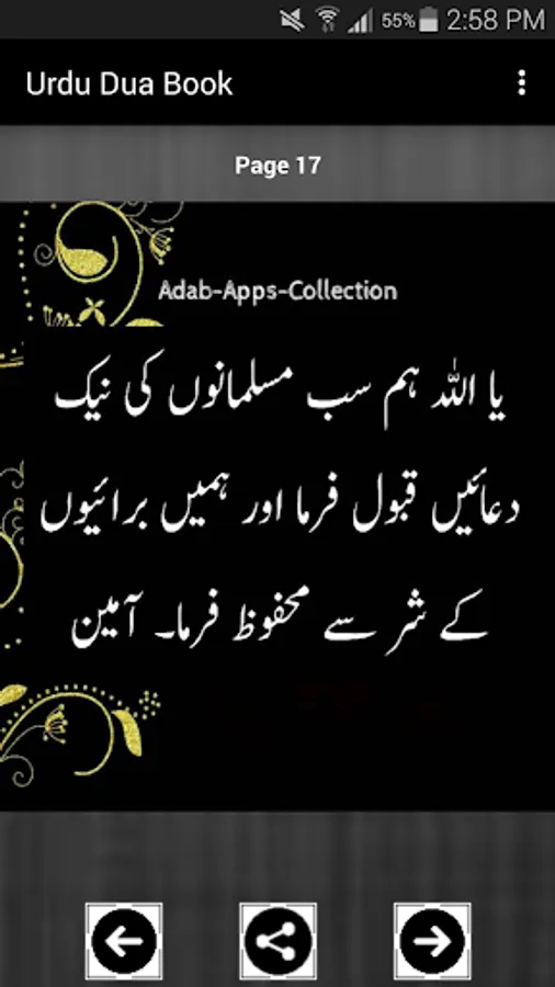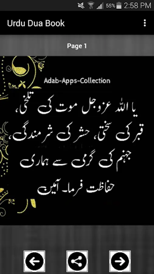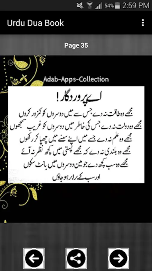 Urdu Word دعا means praying. This Dua Book App will help reader to read many Dua and they can read these Dua's during his or her prayers. This app is beneficial for those who likes to Read in Urdu because data in this app is in Urdu.