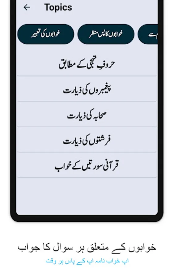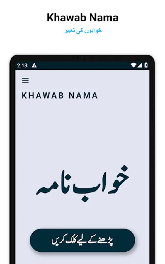 This app Khwab nama in Urdu, is to help you find the meaning of your dreams. This can be done without going through the hassle of searching for it on a website. You just have to search by alphabatic order and it will automatically give you its meaning in Urdu. You can find thousends of meanings and interpretations in this application.