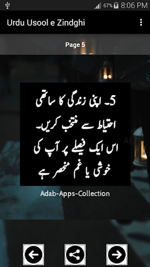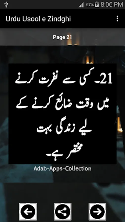 Urdu Usool e Zindghi is an App which has collection of Usool e Zindghi Quotes (Urdu Life Lessons).