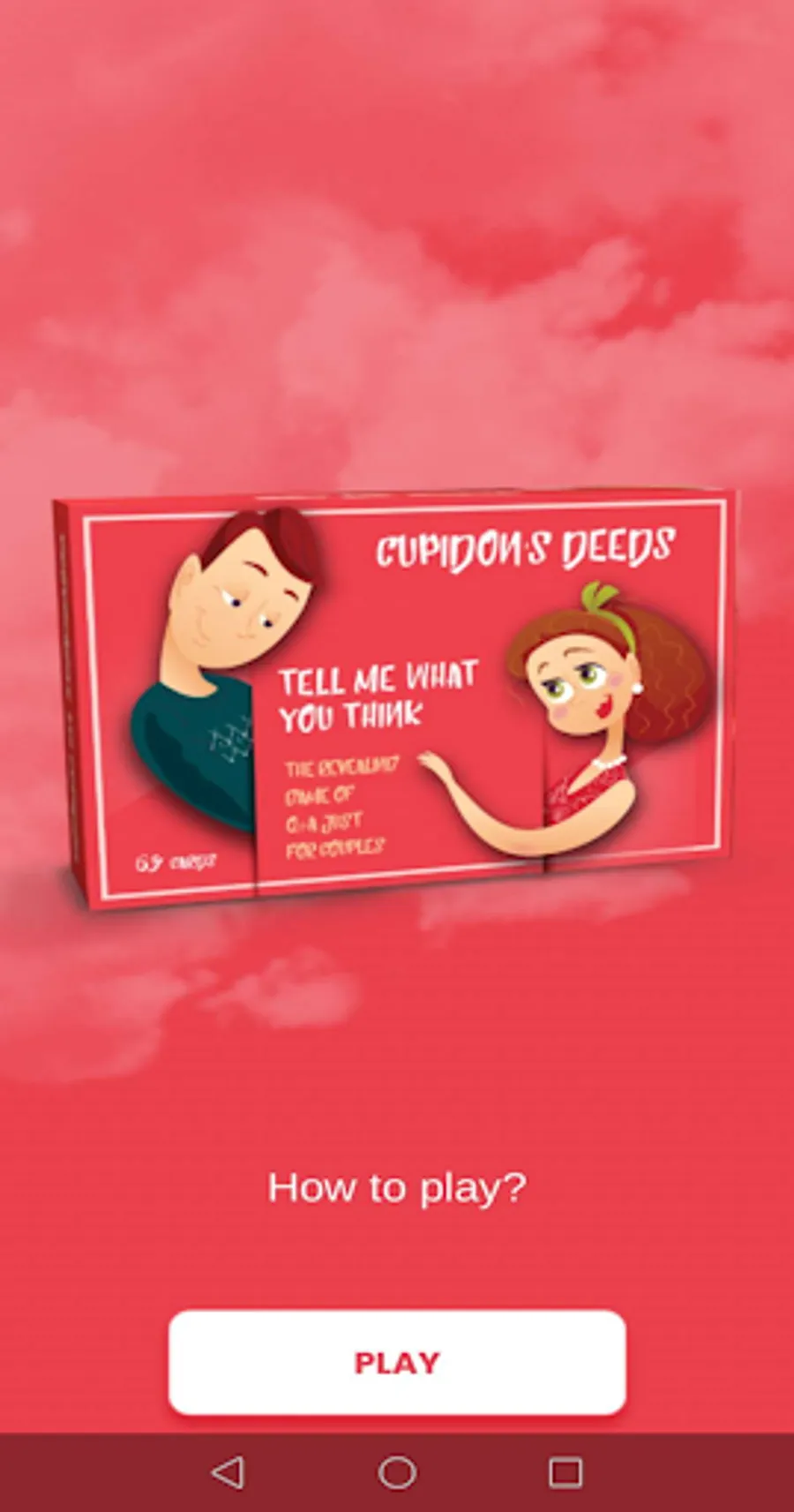 Cupidon’s Deeds is a card game for couples who want to elevate their relationship!The game is designed to help couples build their dream relationship.How?