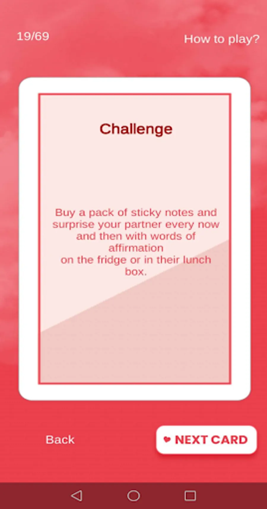 With questions and challenges that help the players discover new things about themselves, while getting to know each other and learning to communicate better – all while having tons of fun !Why play Cupidon’s Deeds?