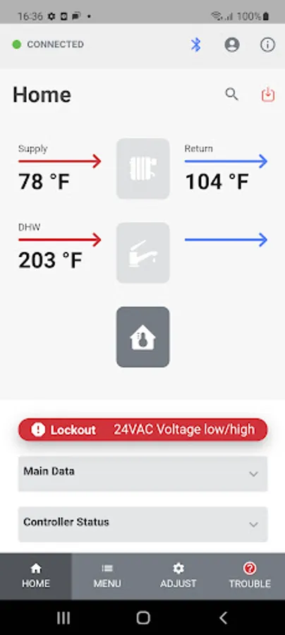 NYB-Connect is a commissioning, diagnostic and service tool consisting of a Bluetooth Adaptor and mobile device app. The app communicates with any New Yorker Boiler modulating condensing boiler. NYB-Connect is a local service tool with web portal data collection and live streaming to enable remote support. Compatible Boilers include GHECB, GHEB, GHECBII and GHEHBII Modulating Condensing Boilers.